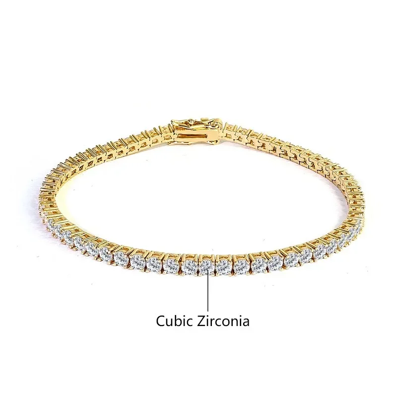 Luxury 18K gold-plated tennis bracelet with 925 silver diamond-style accents. Timeless design for weddings, parties, or gifting.