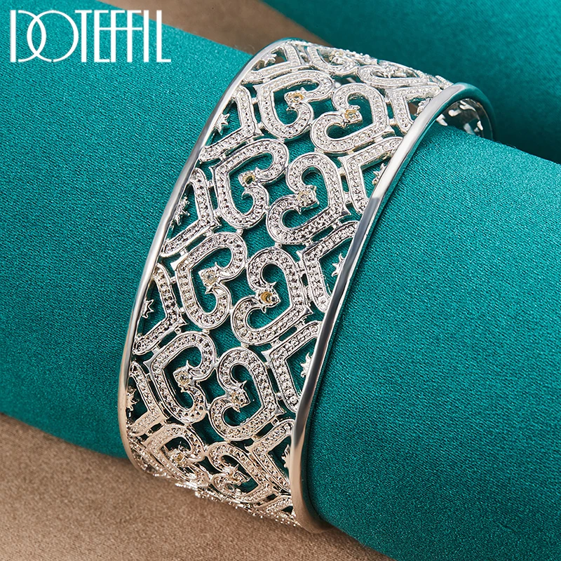 Elegant 925 sterling silver big heart bangle bracelet. Timeless design perfect for gifting or adding a romantic touch to daily outfits.