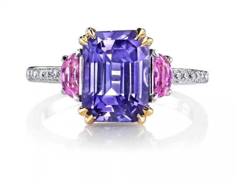 925 silver purple CZ micro-inlay ring. Elegant and sparkling design perfect for engagements, gifts, or daily wear.