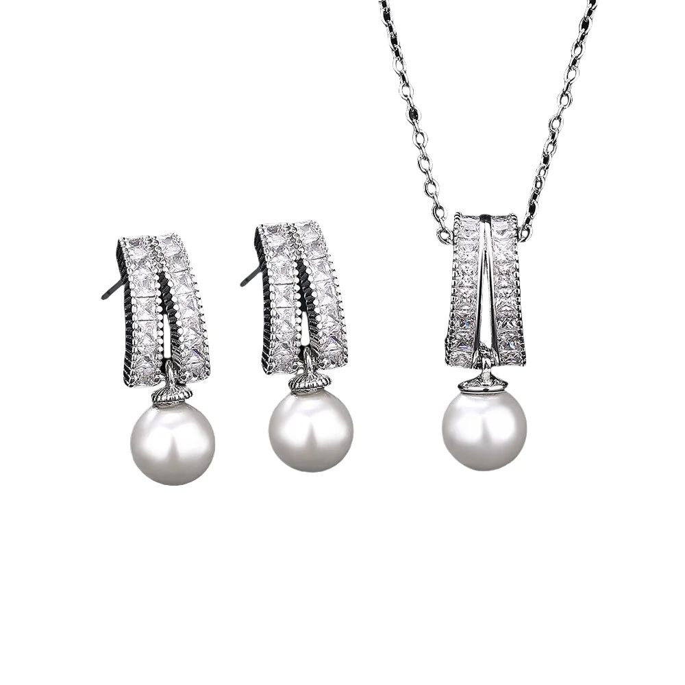 925 silver tassel pearl jewelry set. Elegant and classic design with matching earrings and necklace for weddings or formal occasions.