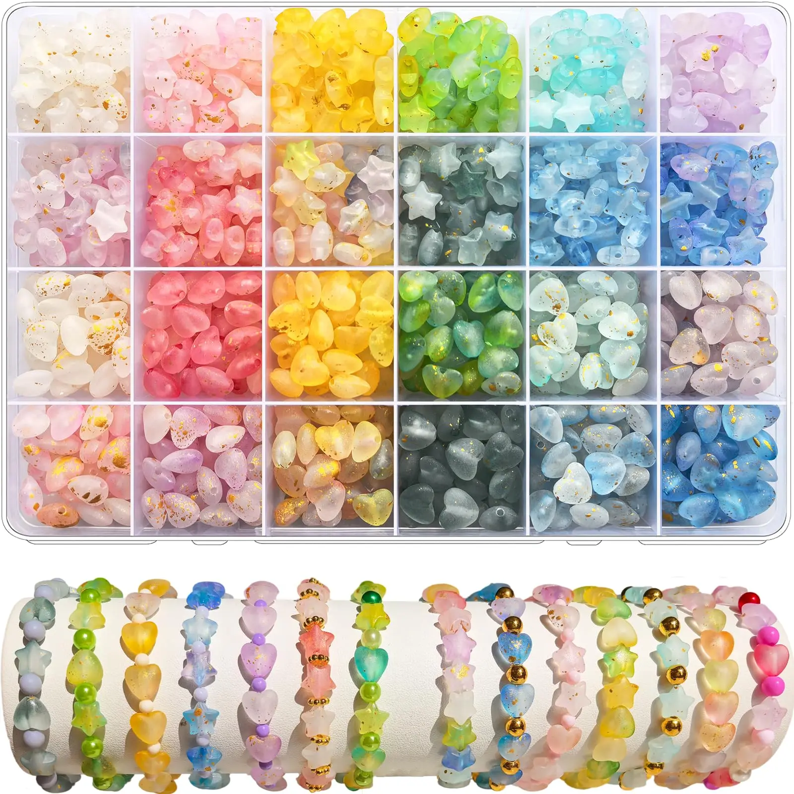 Acrylic star and heart beads set. Colorful and fun beads ideal for DIY crafts and jewelry making.