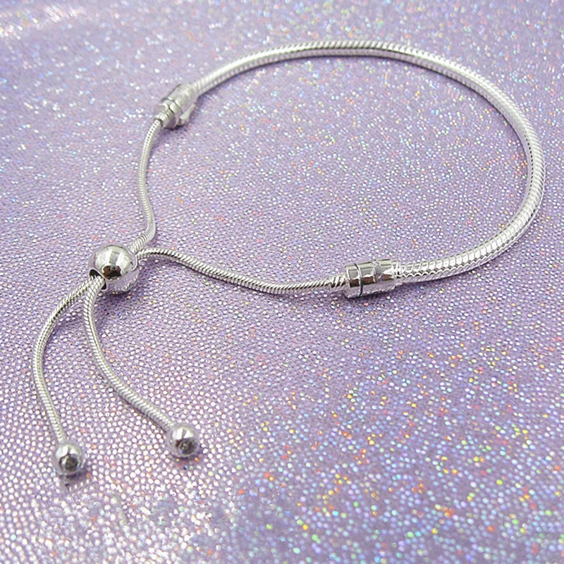 Classic silver-tone adjustable snake chain bracelet with a smooth, polished finish. Versatile design perfect for layering or wearing alone.