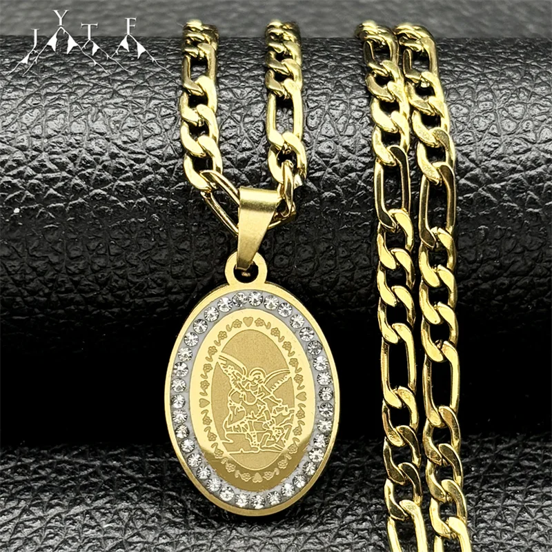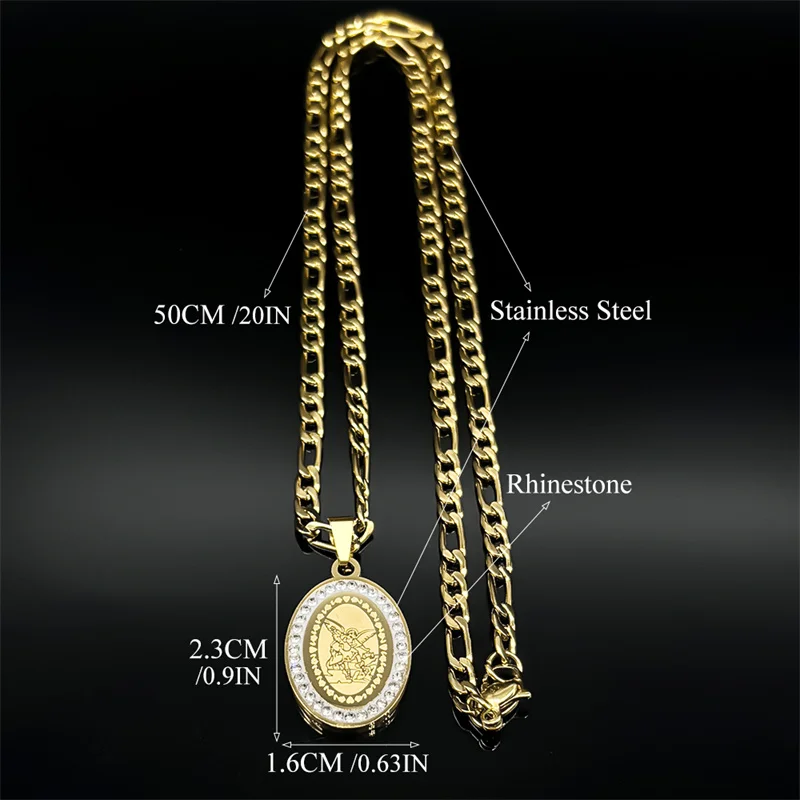 Archangel Michael medal necklace with symbolic design. Durable and elegant, perfect for spiritual fashion or gifts.