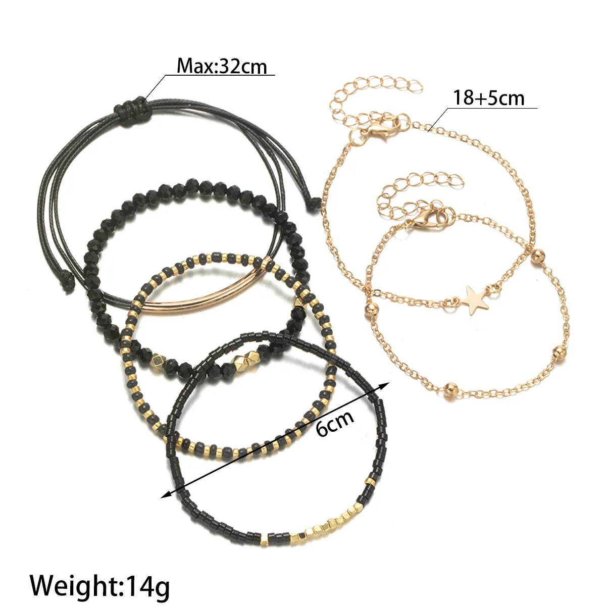 Trendy black beaded bracelet set with star charm. Versatile women’s jewelry for casual or boho fashion looks.
