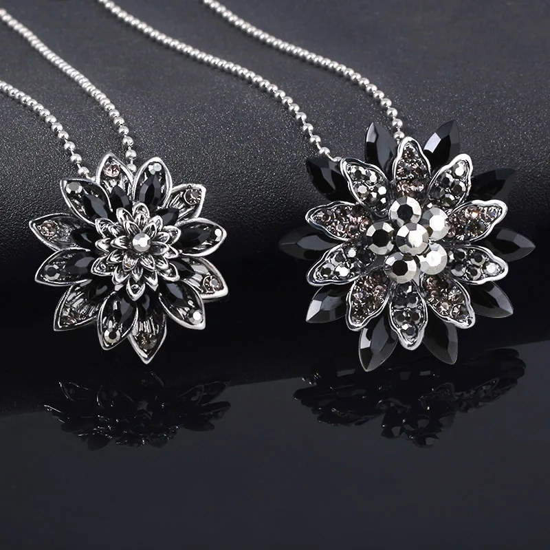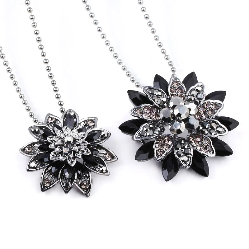 Black Dahlia vintage flower necklace. Elegant and unique design for women’s casual or formal outfits.