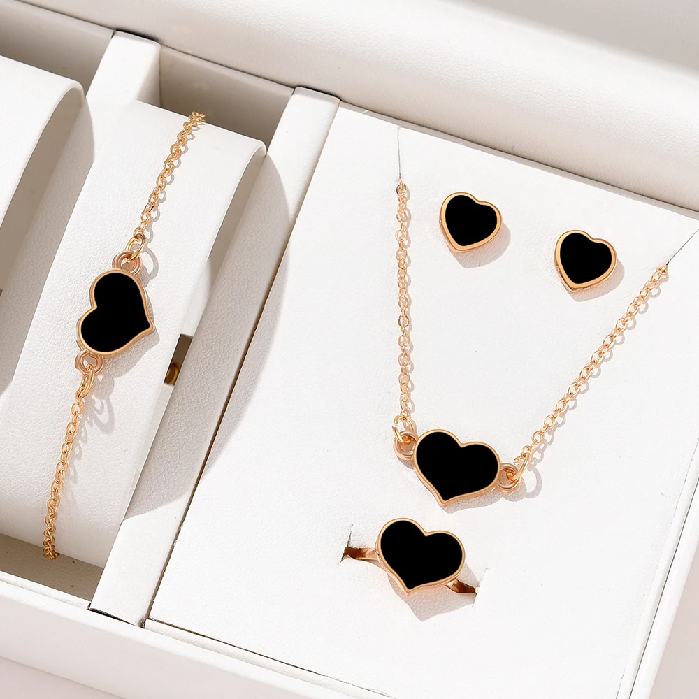 Trendy black heart jewelry set for women. Includes matching necklace and earrings, perfect for casual or gothic-inspired fashion.