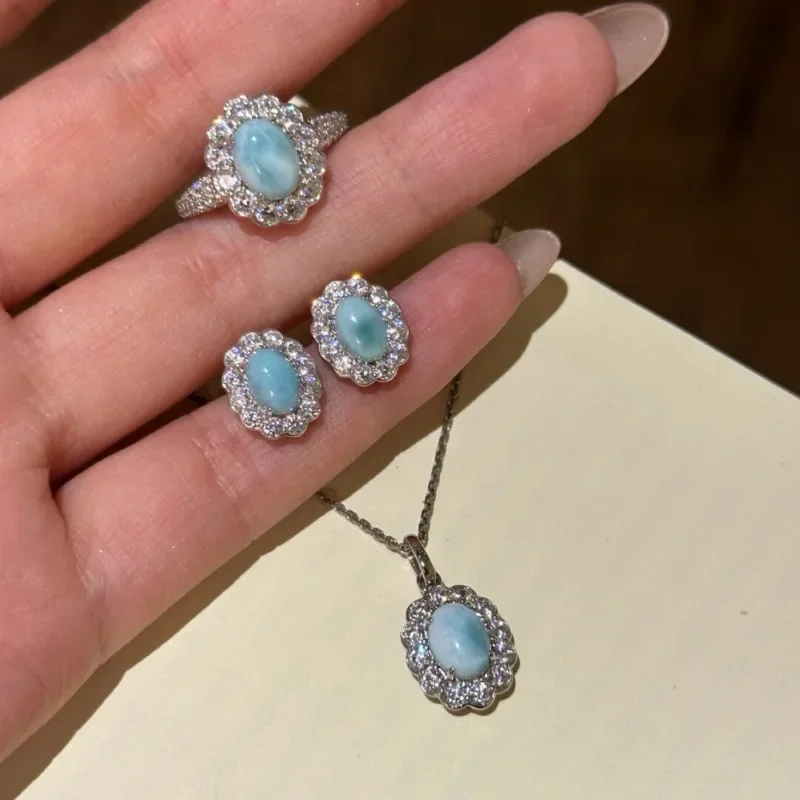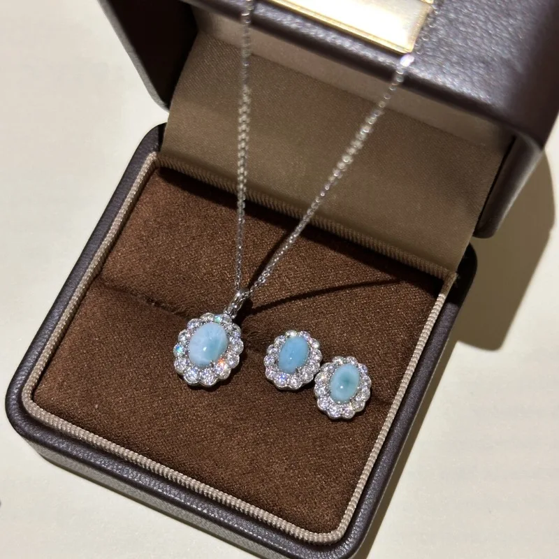 A vintage-inspired jewelry set featuring blue flower gems, designed to add classic charm and feminine beauty to any outfit.