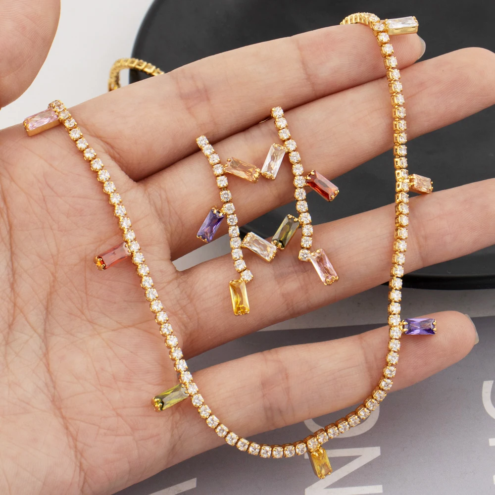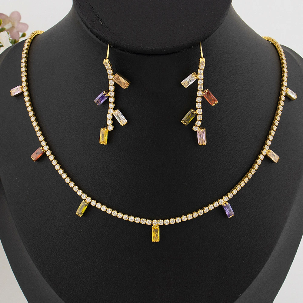 Elegant bohemian-inspired jewelry set featuring square zircon stones. Ideal for parties, weddings, and casual or festival styling.