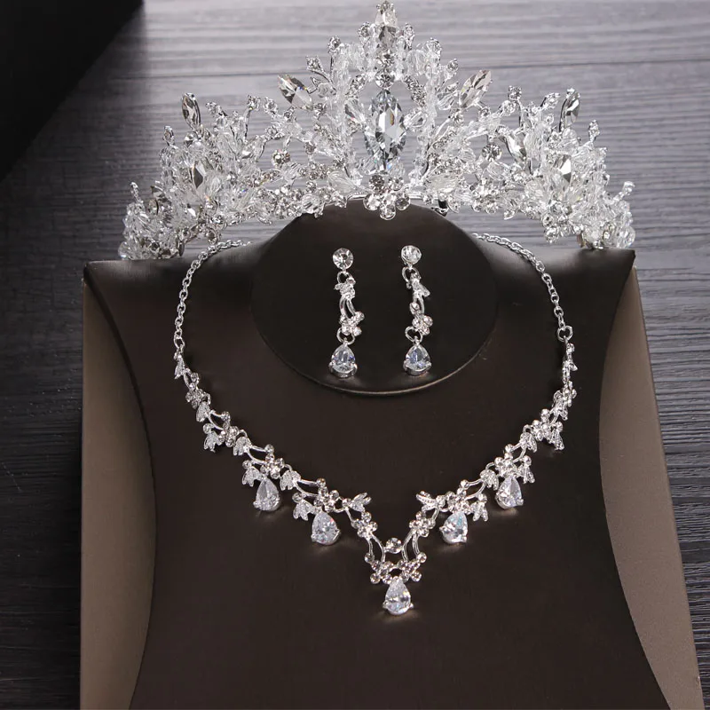 Bridal crown necklace and earring set. Sparkling design ideal for weddings, proms, or formal celebrations.