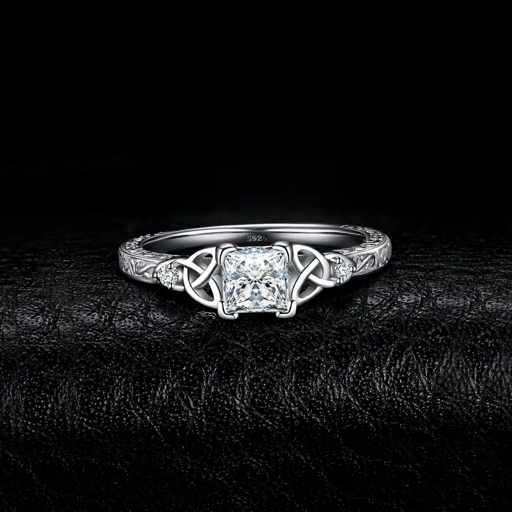 Celtic CZ engagement silver ring with sparkling stones. Perfect gift or proposal ring with timeless elegance.
