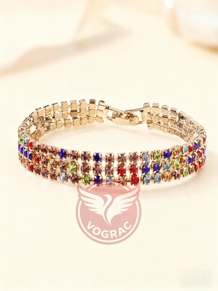 Elegant wedding bangle bracelet featuring sparkling colorful CZ stones. A timeless luxury piece perfect for weddings, parties, and special occasions.