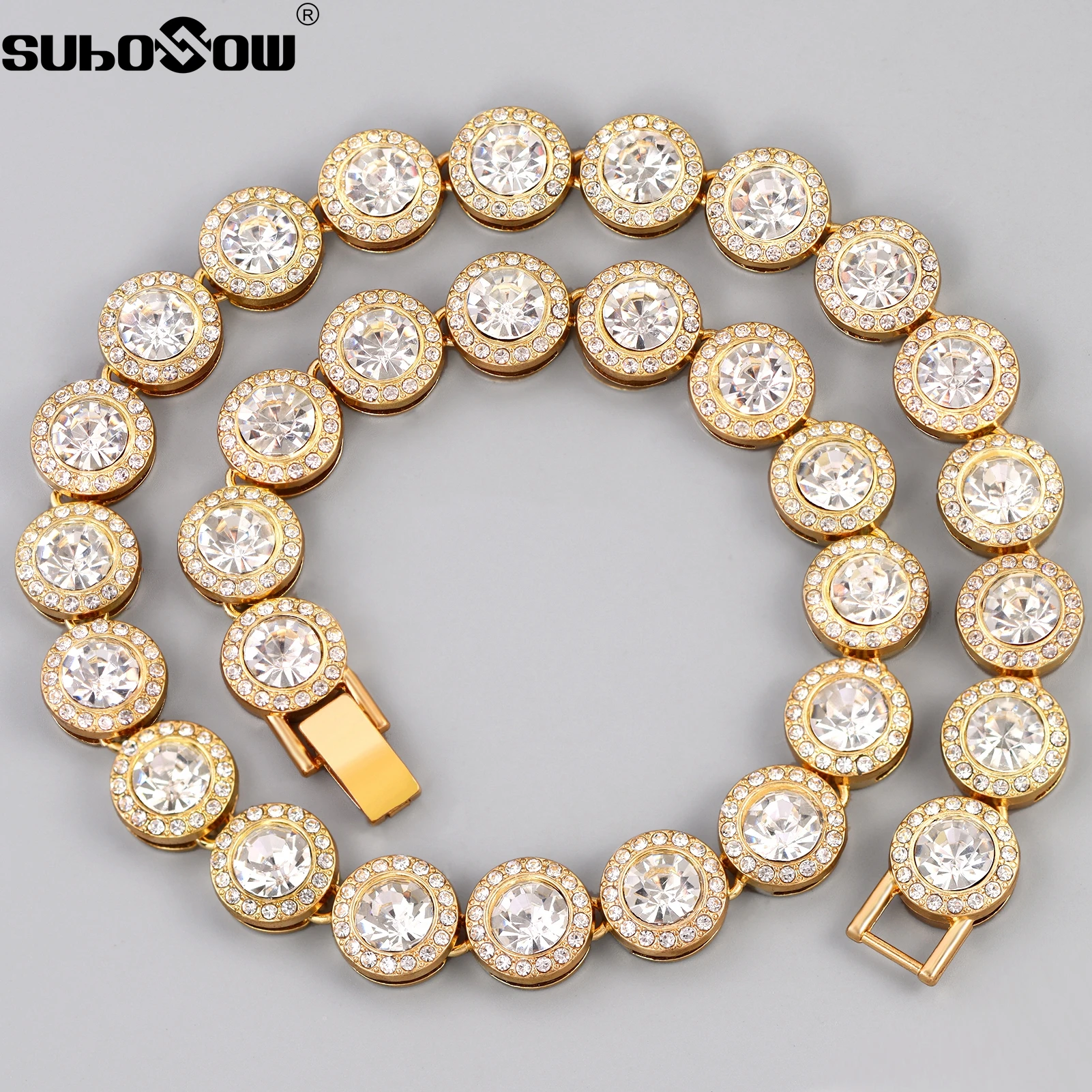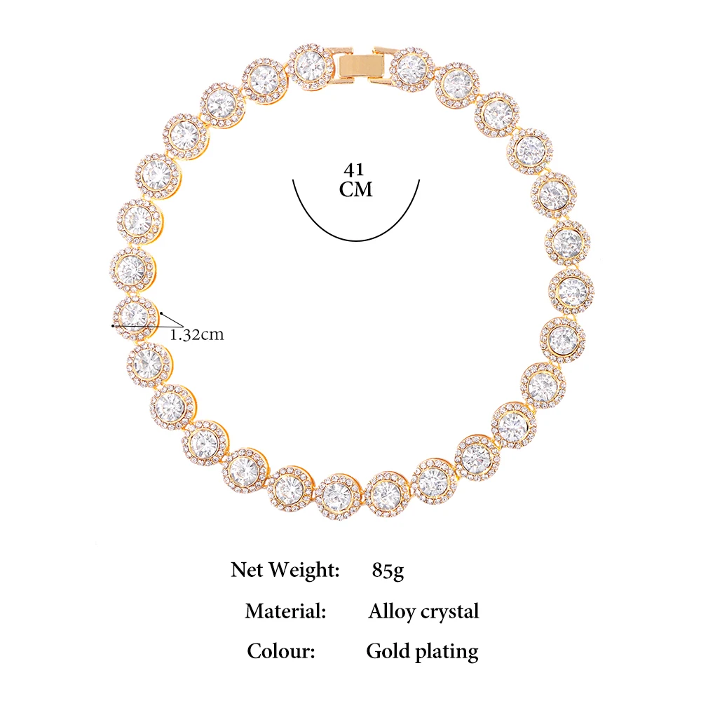 Luxury Cuban rhinestone tennis chain necklace. Sparkling statement piece perfect for parties, hip-hop fashion, and special occasions.
