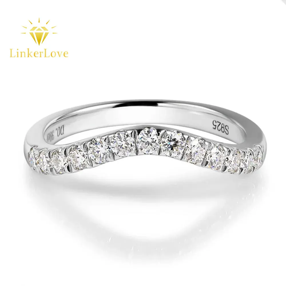 Stylish curved moissanite wedding band in 925 silver. Perfect promise ring for weddings, engagements, or romantic gifts.