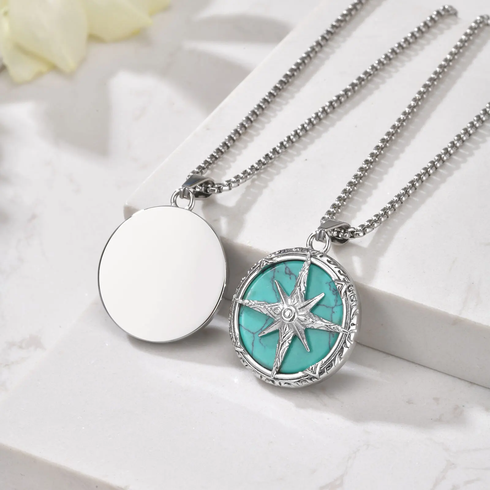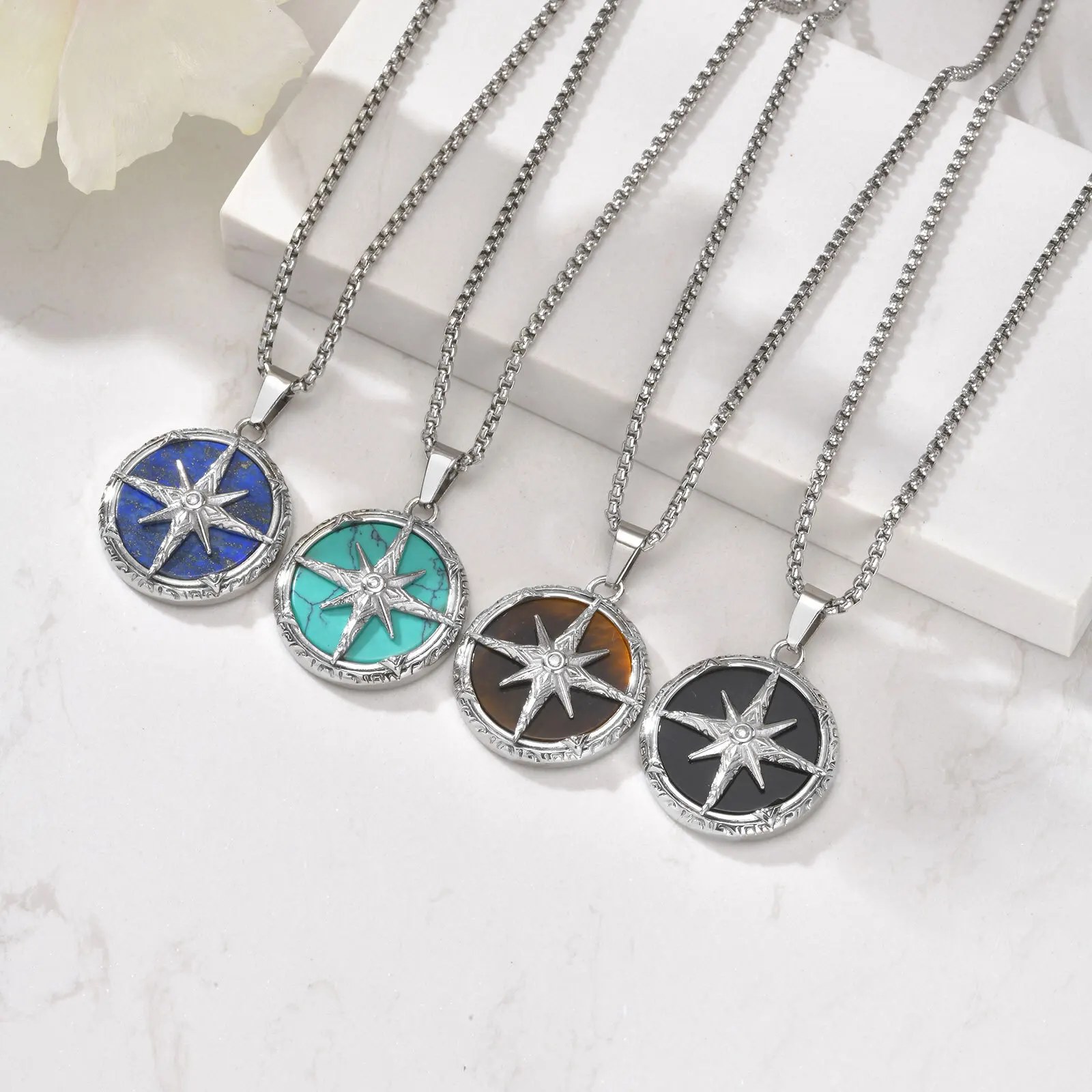 Eight awn star turquoise necklace. Unique, colorful design perfect for casual wear or spiritual-inspired fashion.