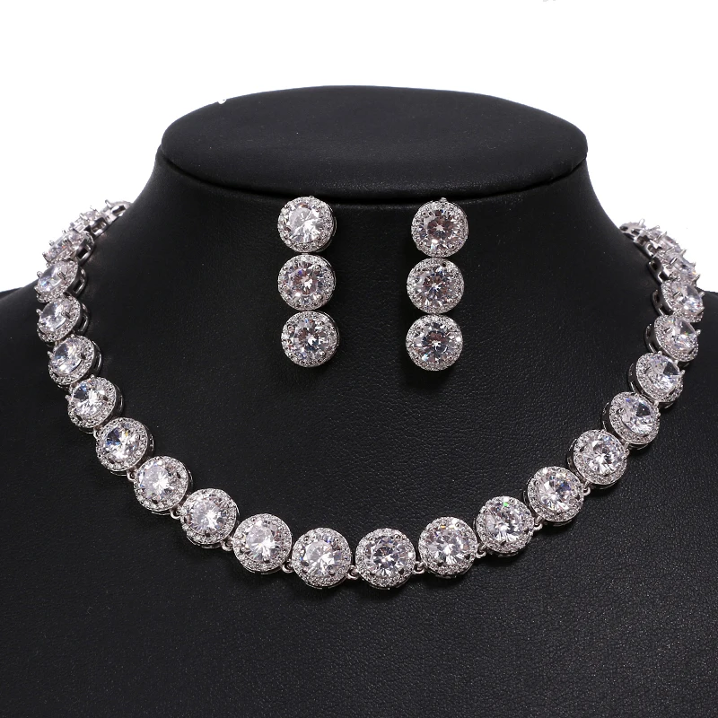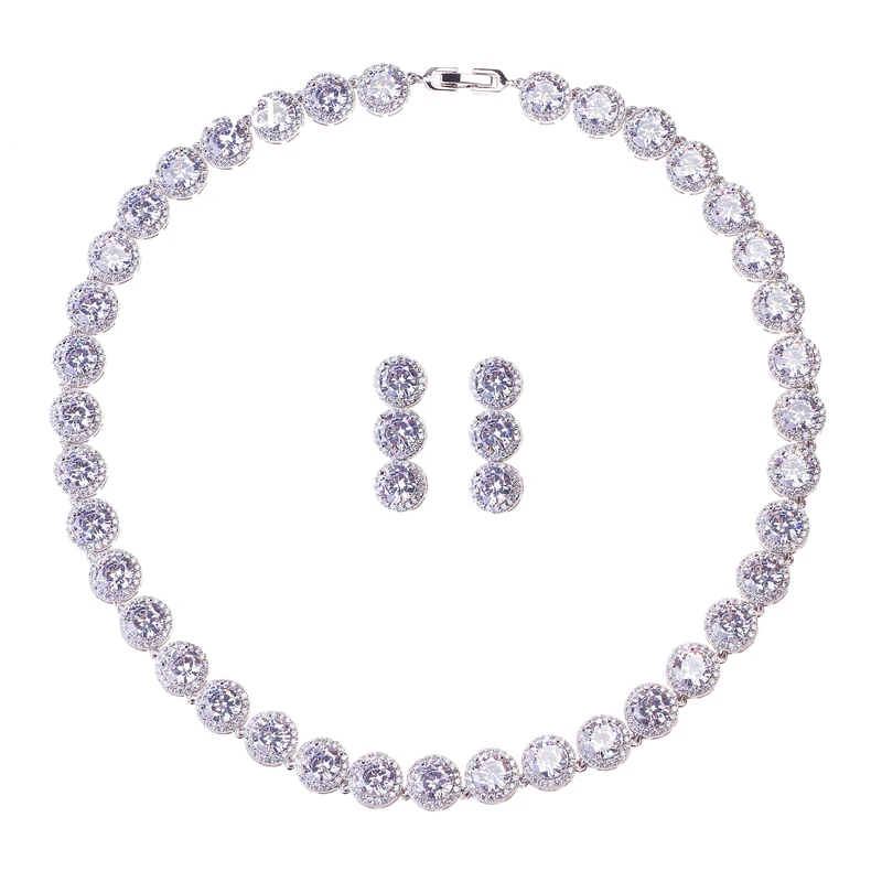 Emmaya round white gold color AAA cubic zircon wedding jewelry set. Elegant and sparkling design perfect for bridal occasions or gifting.