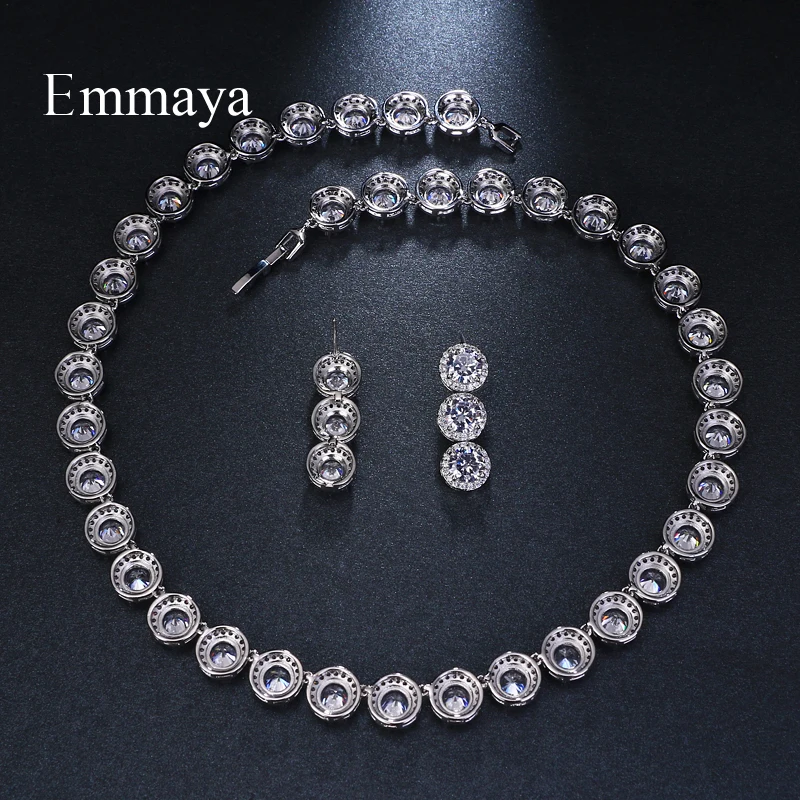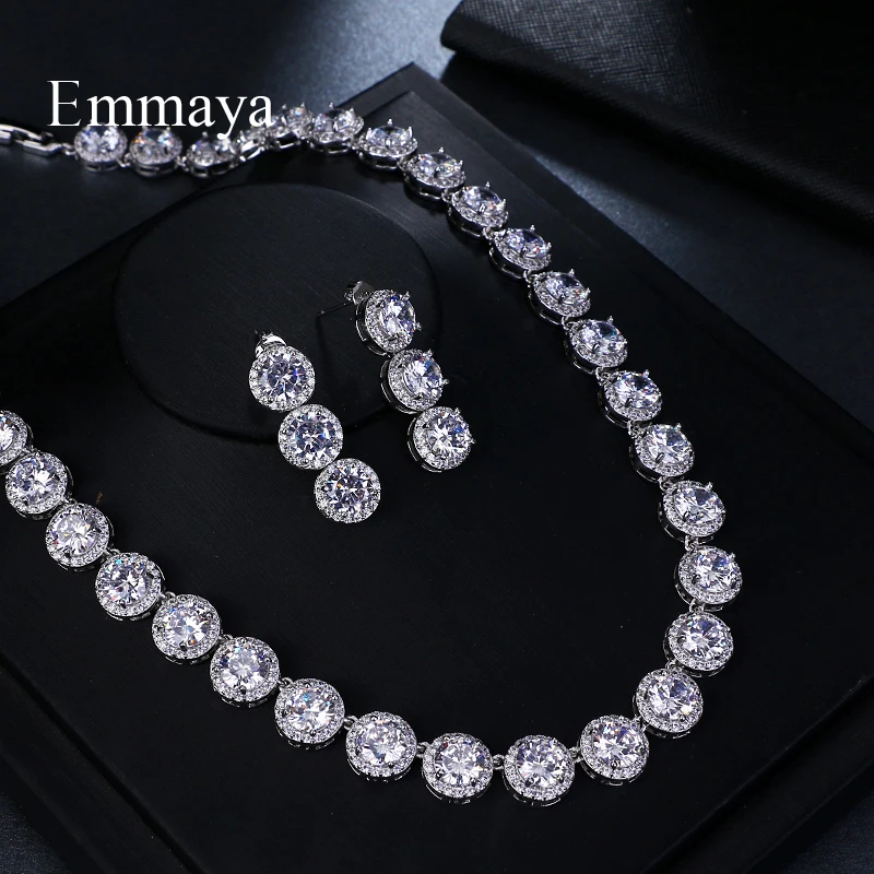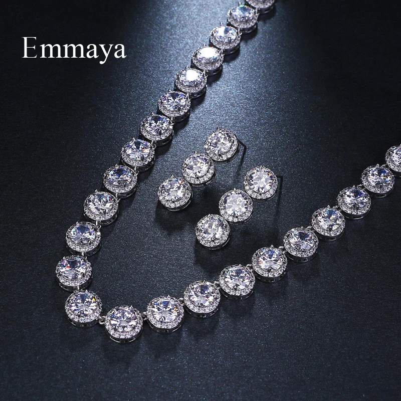 Emmaya Brand Gorgeous Round Jewelry White Gold Color AAA Cubic Zircon Wedding Jewelry Sets For Lover Brides Popular Jewelry Gift