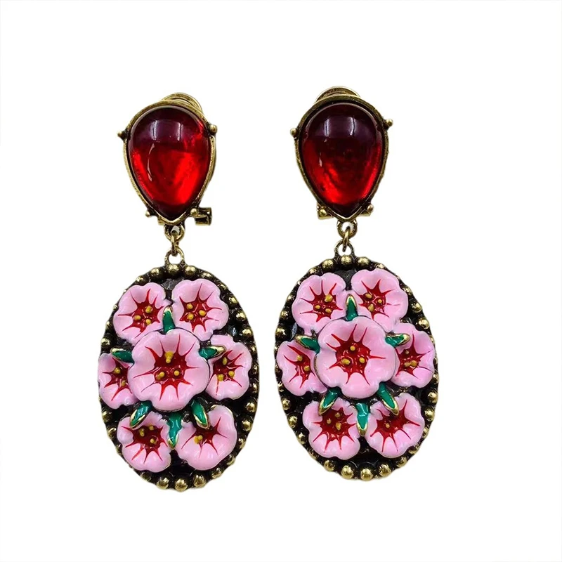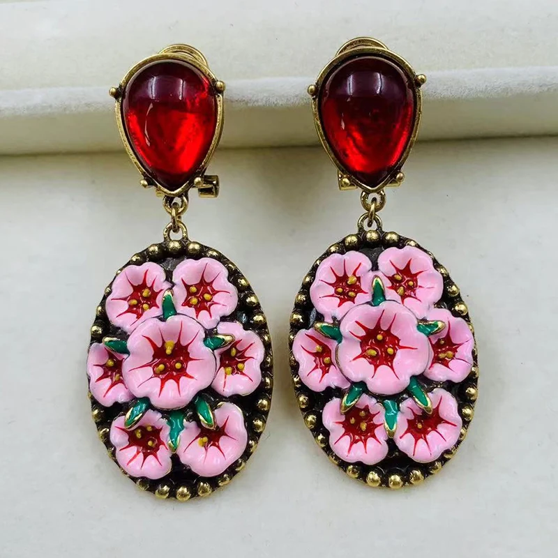 Colorful enamel flower dangle earrings. Lightweight, feminine, and perfect for daily wear or festive occasions.