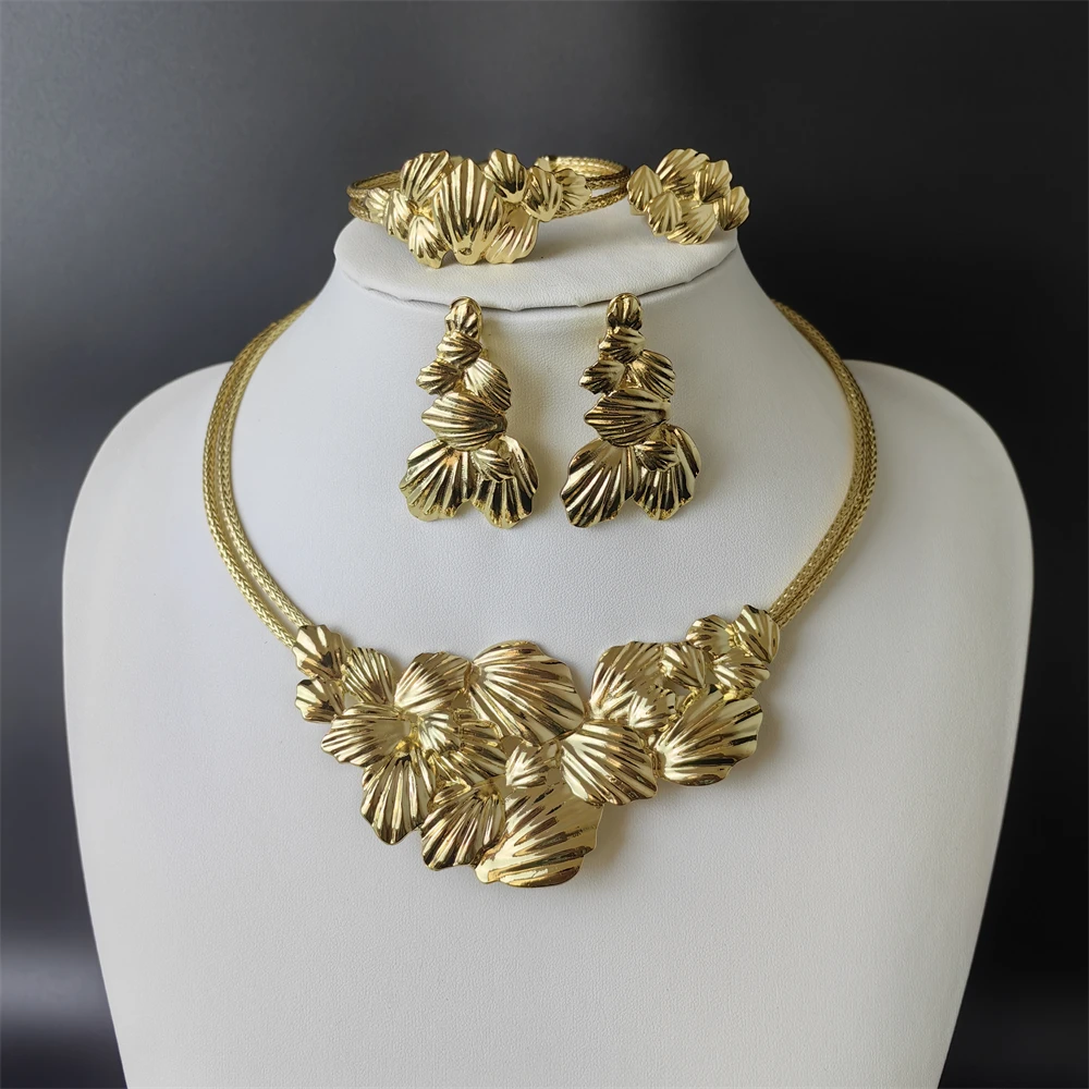 Premium ESALE African-inspired bridal gold jewelry set. Includes coordinated necklace, earrings, and bracelet for a stunning bridal ensemble.