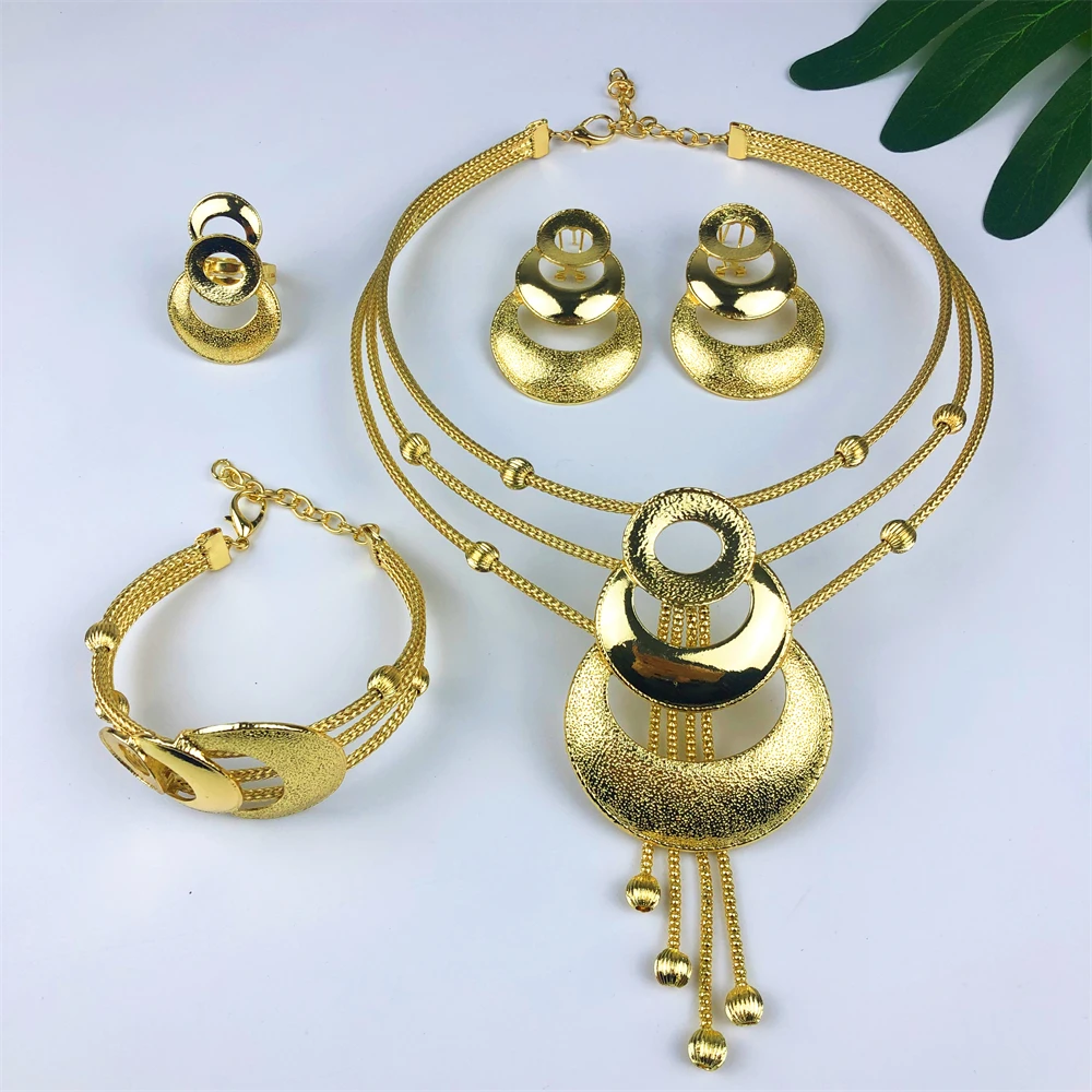 Elegant ESALE Italy 18K gold 4-piece jewelry set. Includes necklace, earrings, bracelet, and ring for a complete, luxurious look.