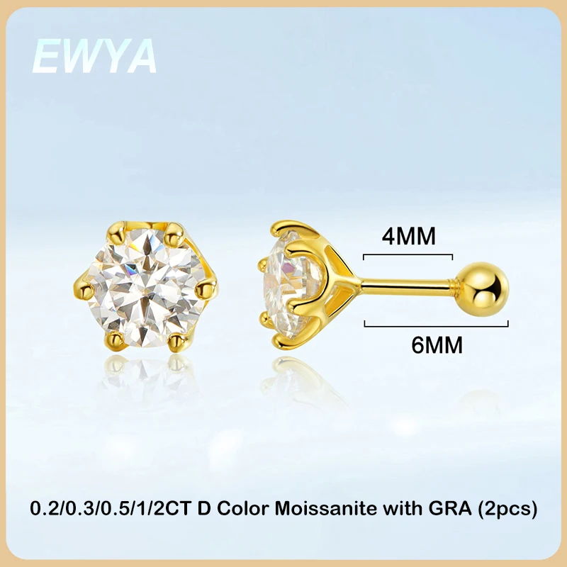 EWYA moissanite screw stud earrings. Secure, sparkling studs ideal for gifting or daily wear.