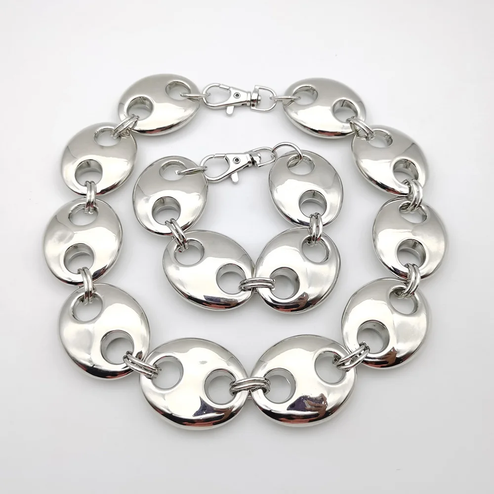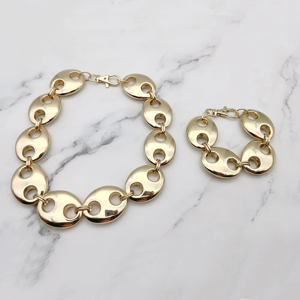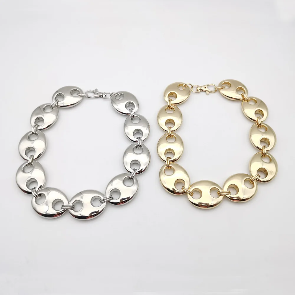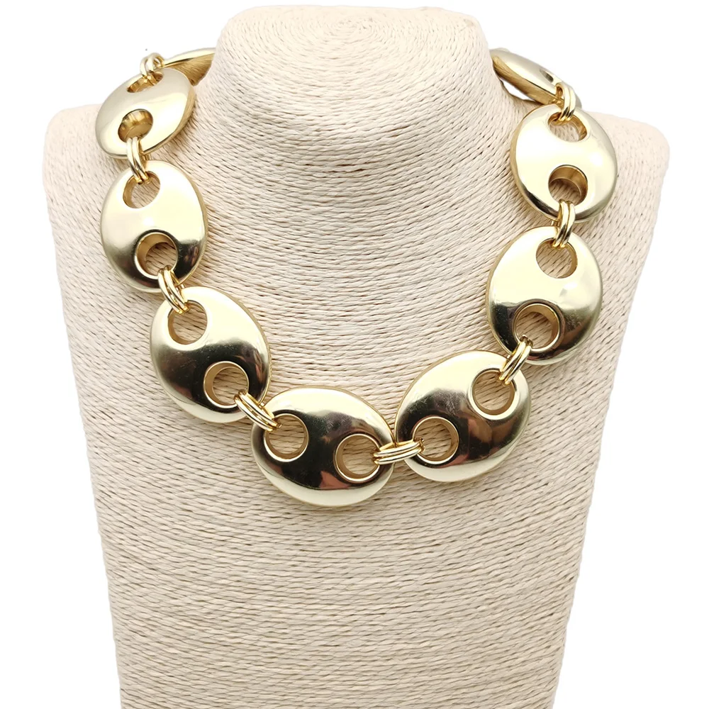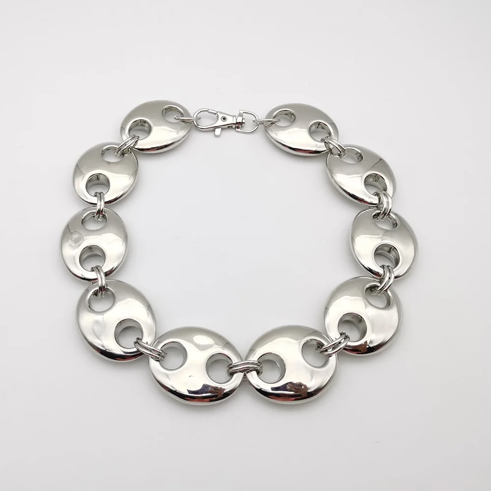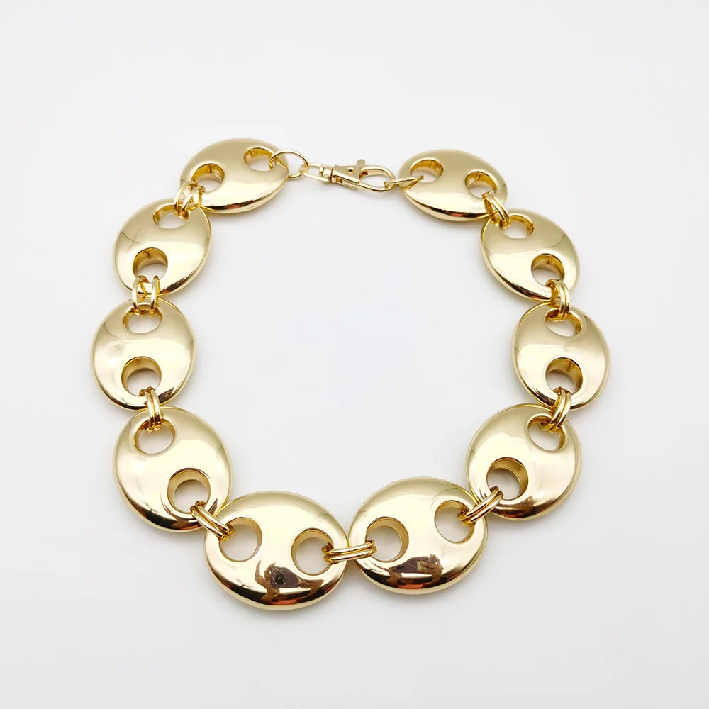 Exaggerated Punk Thick CCB Metallic Golden Oval Short Necklace Women Men Handmade High Quality Collar Necklace Punk Gift