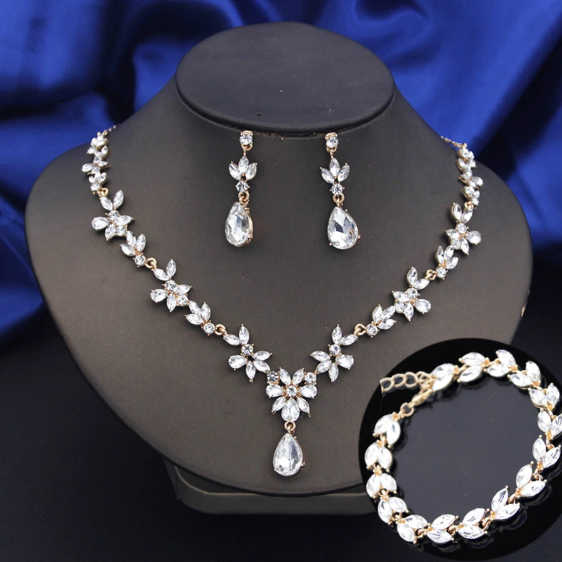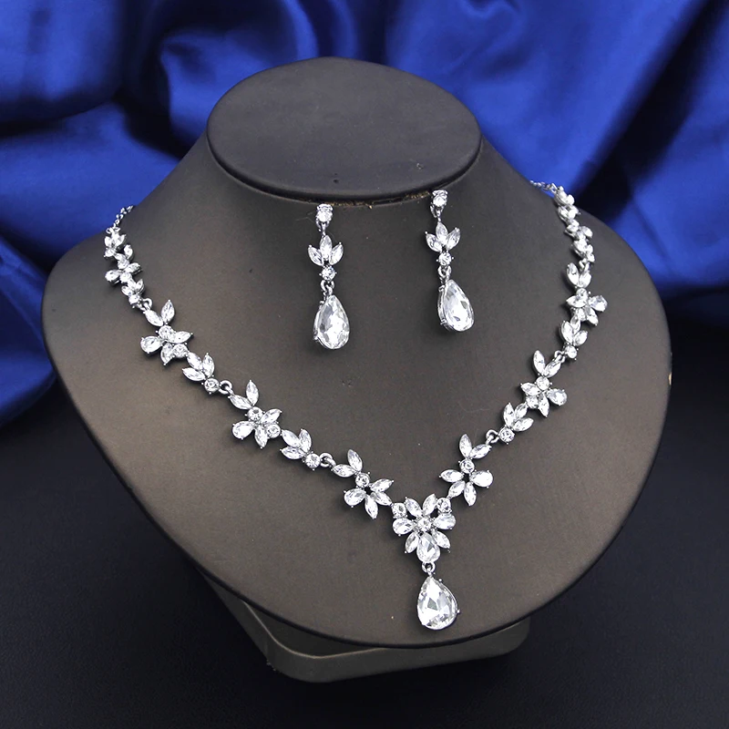 | Colors: | Handmade Silver Flower Crystal Jewelry Sets for Girls |