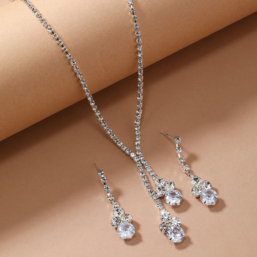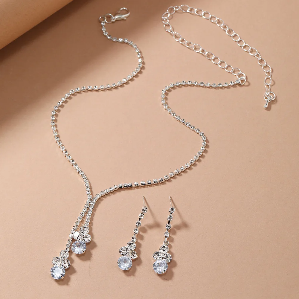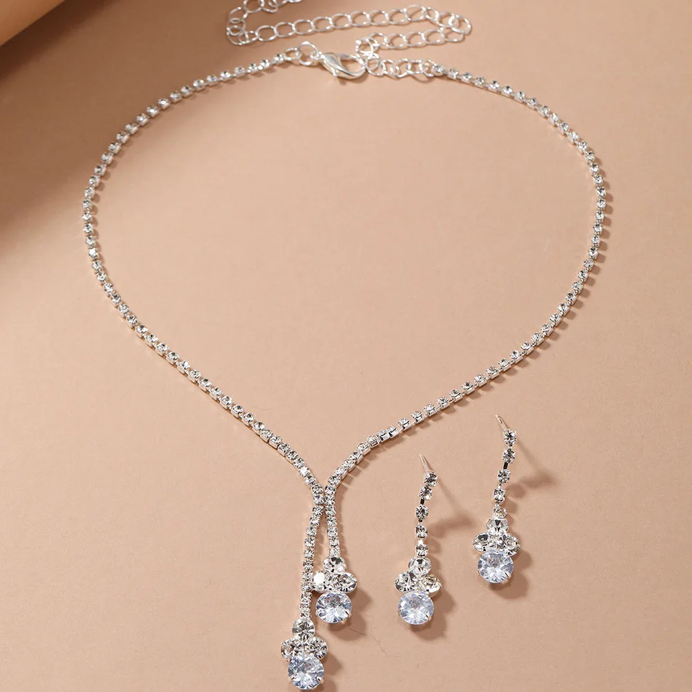 Beautiful floral design adorned with cubic zirconia, creating a romantic bridal jewelry set with brilliant sparkle.