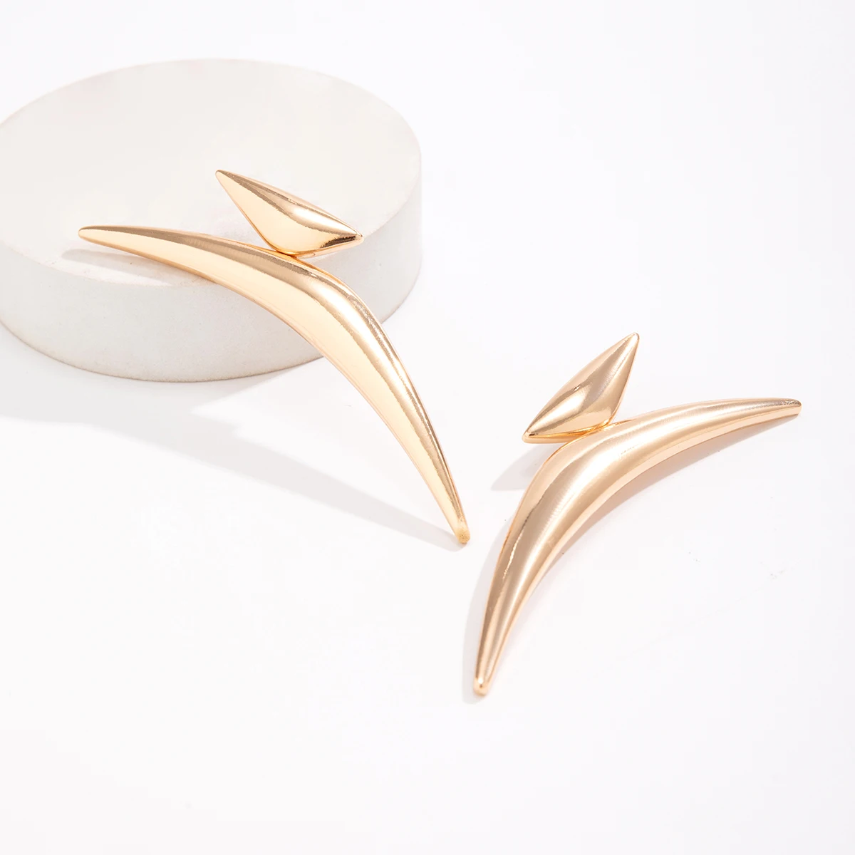 Modern geometric metal drop earrings. Minimalist and versatile design suitable for casual or formal occasions.