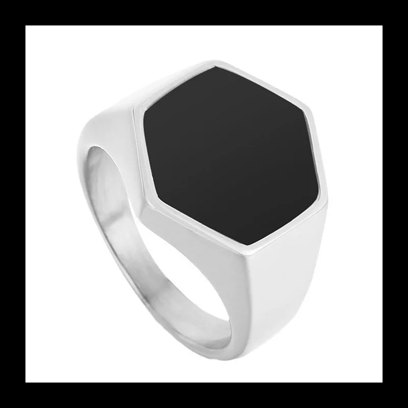 Stylish hexagon epoxy ring crafted from titanium steel. Modern geometric design with long-lasting durability for everyday fashion jewelry.