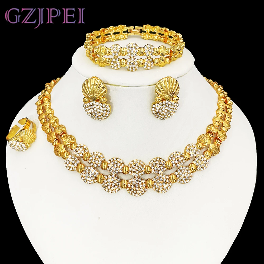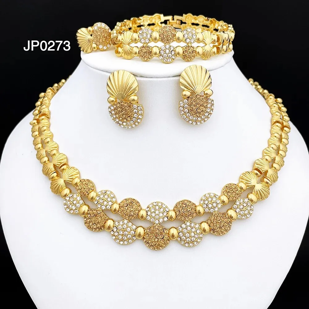Elegant Italian gold-color jewelry set with matching necklace and earrings. Perfect wedding gift or premium fashion accessory for women.