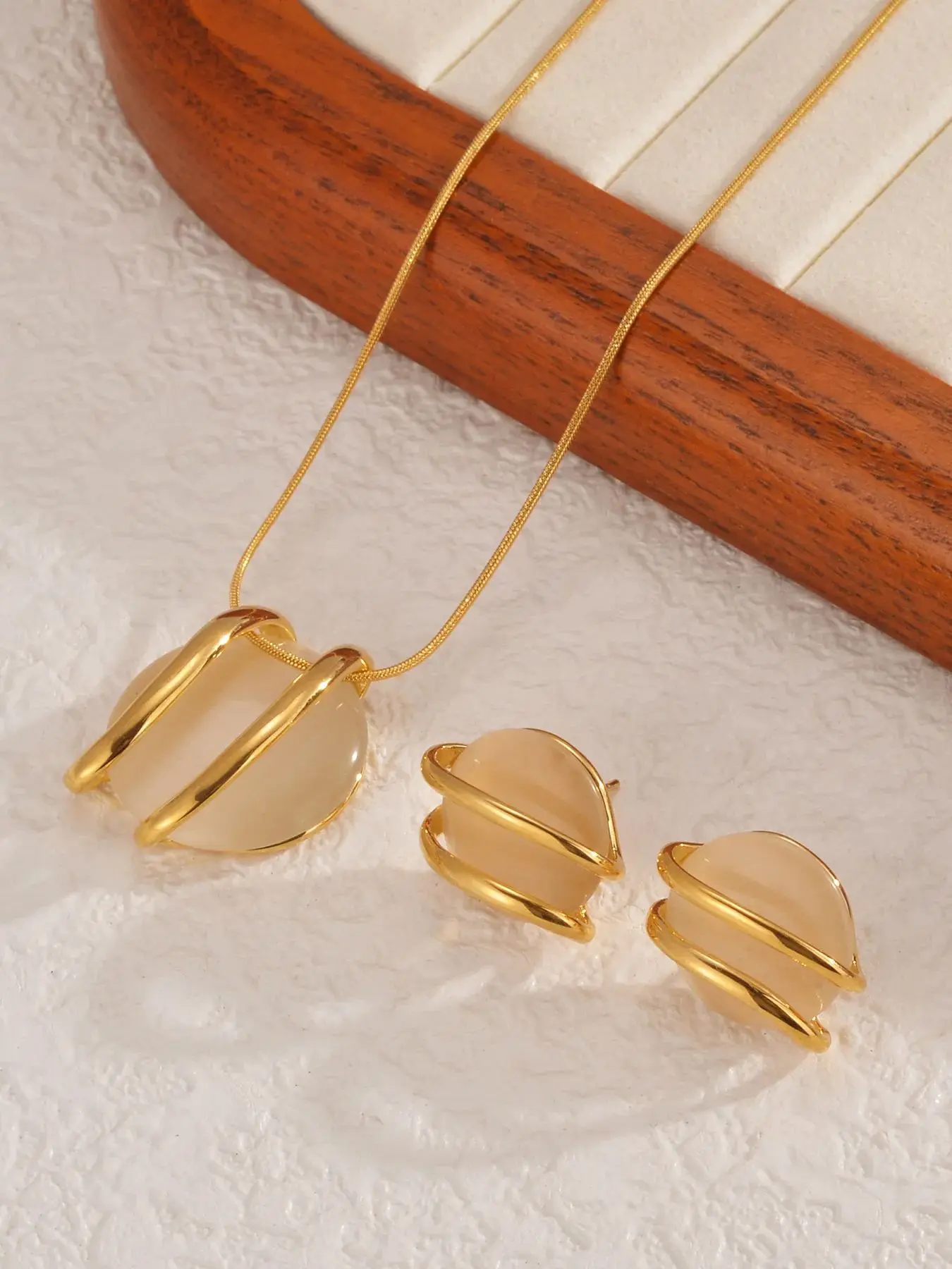 Name: Kissmoon Stainless Steel Gold Color Exquisite Luxury Geometry Zircon Necklace Earing Set for Women Party Brithday Jewelry Gifts