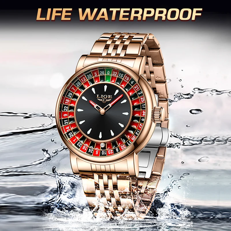 Luxury LIGE men’s quartz watch with luminous hands and waterproof steel construction. Elegant, durable design for modern professionals.