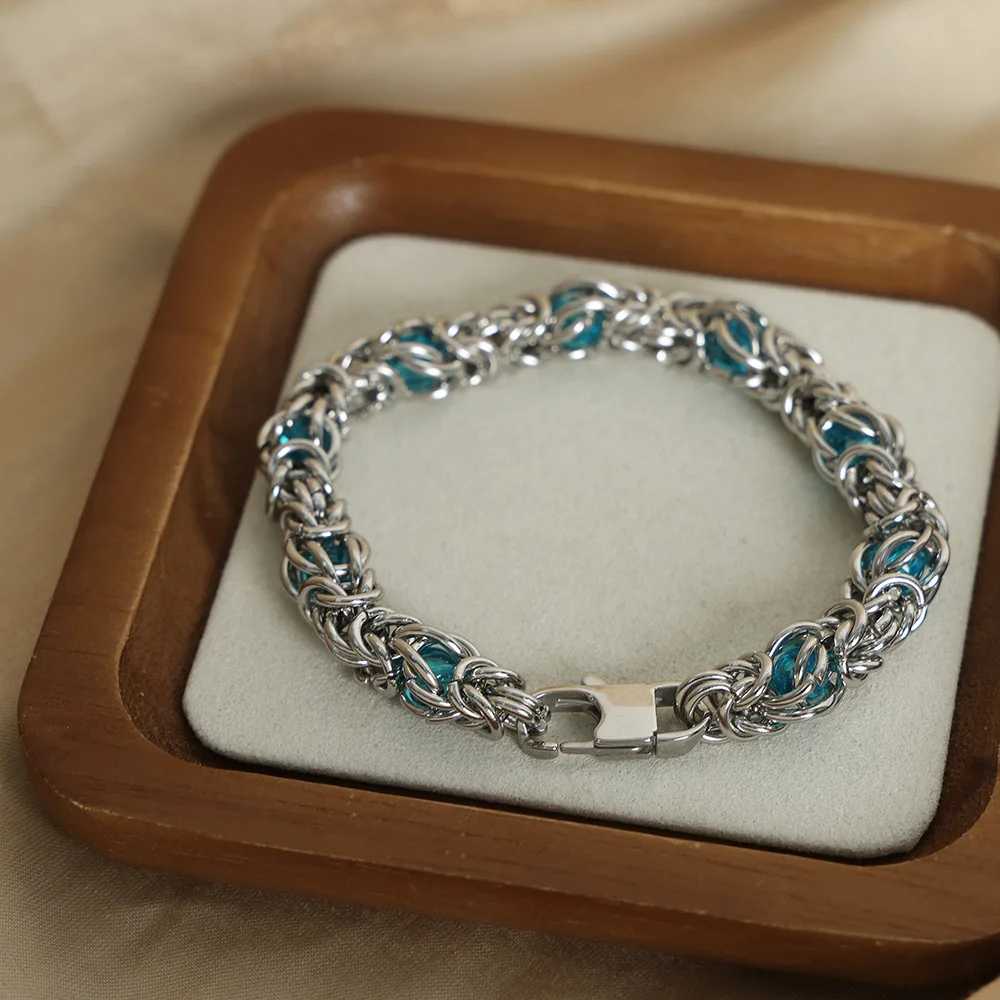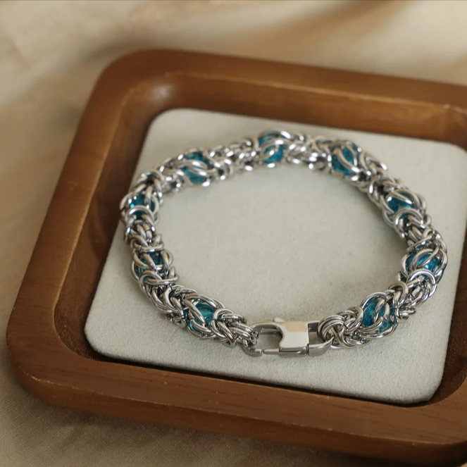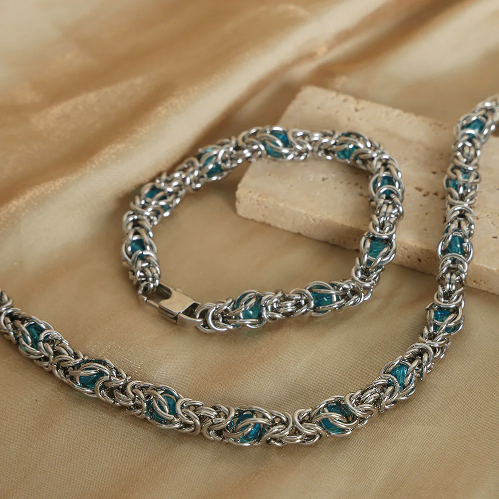 Liora stainless steel chain jewelry set. Includes necklace and bracelet with modern, versatile design for daily wear.