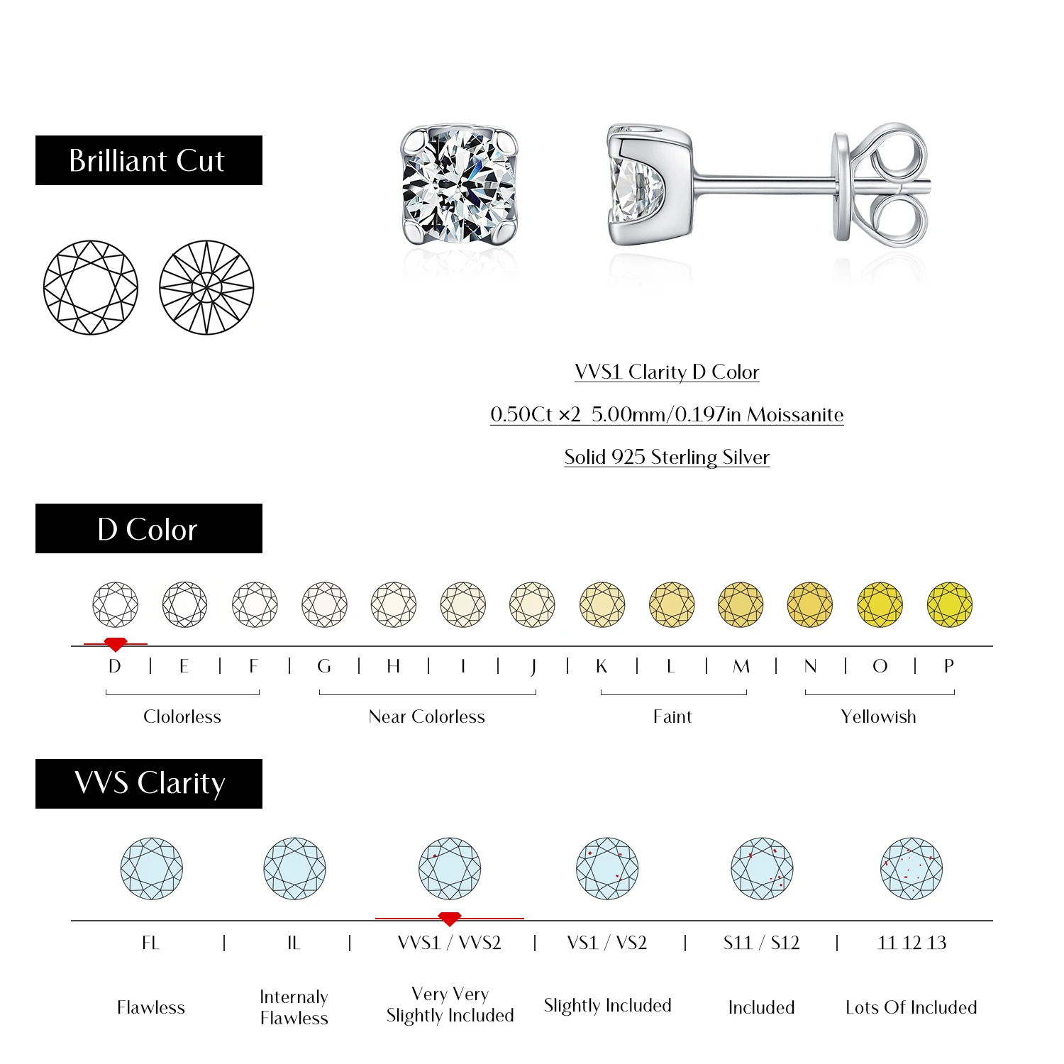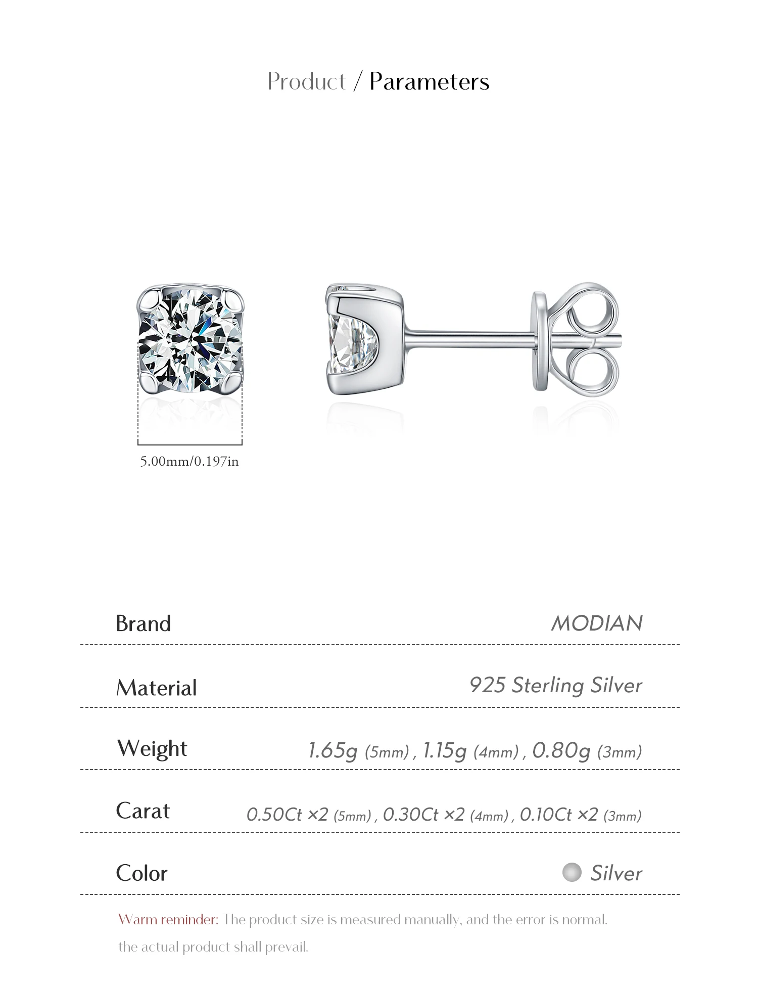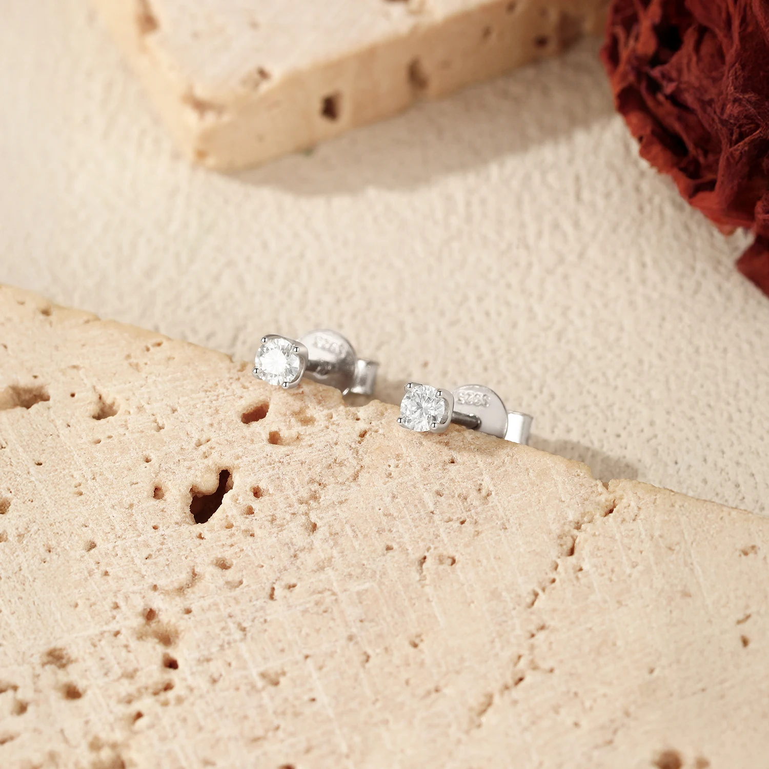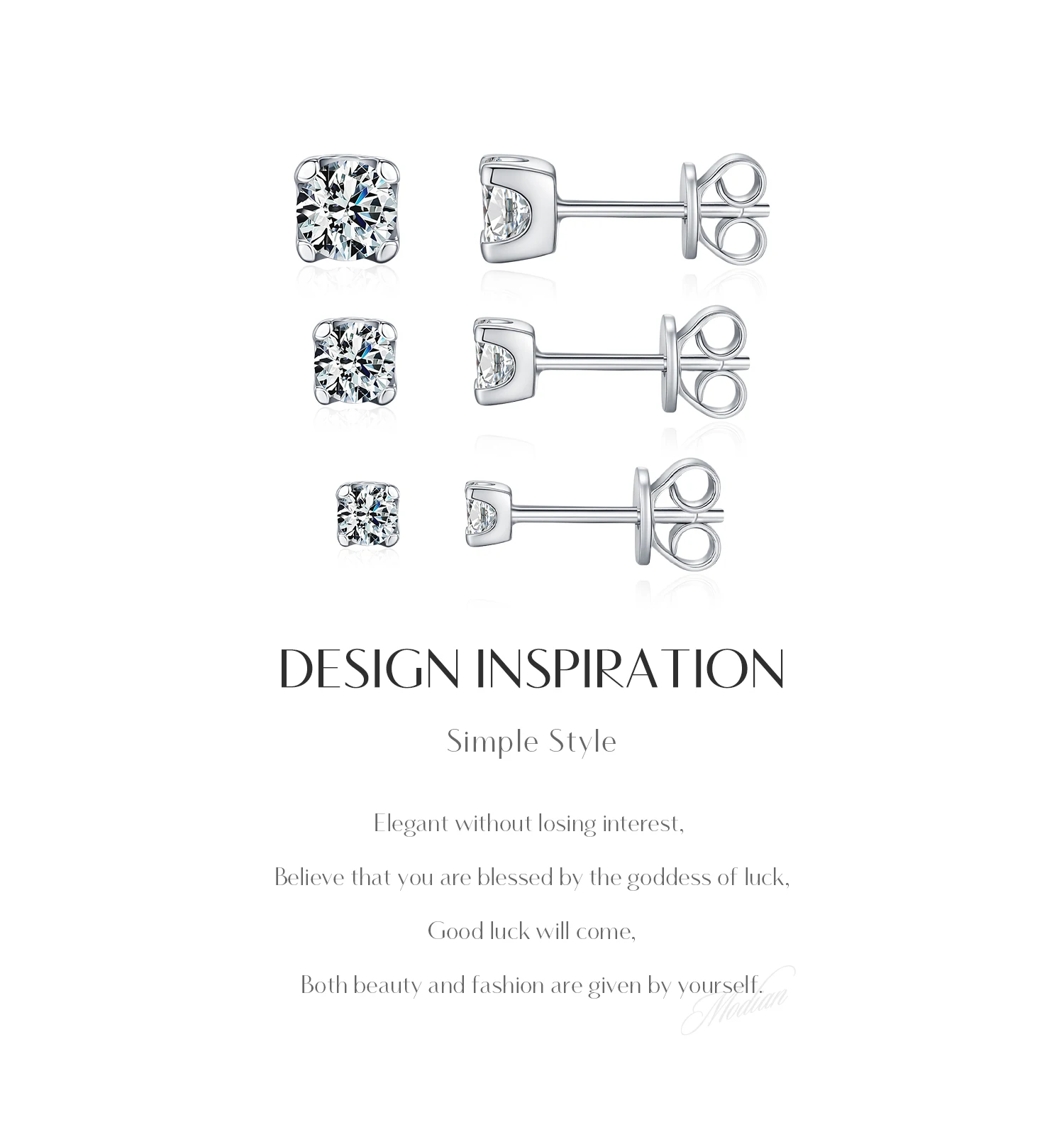 MODIAN minimalist moissanite stud earrings. Sleek and modern design with sparkling stones for everyday elegance.