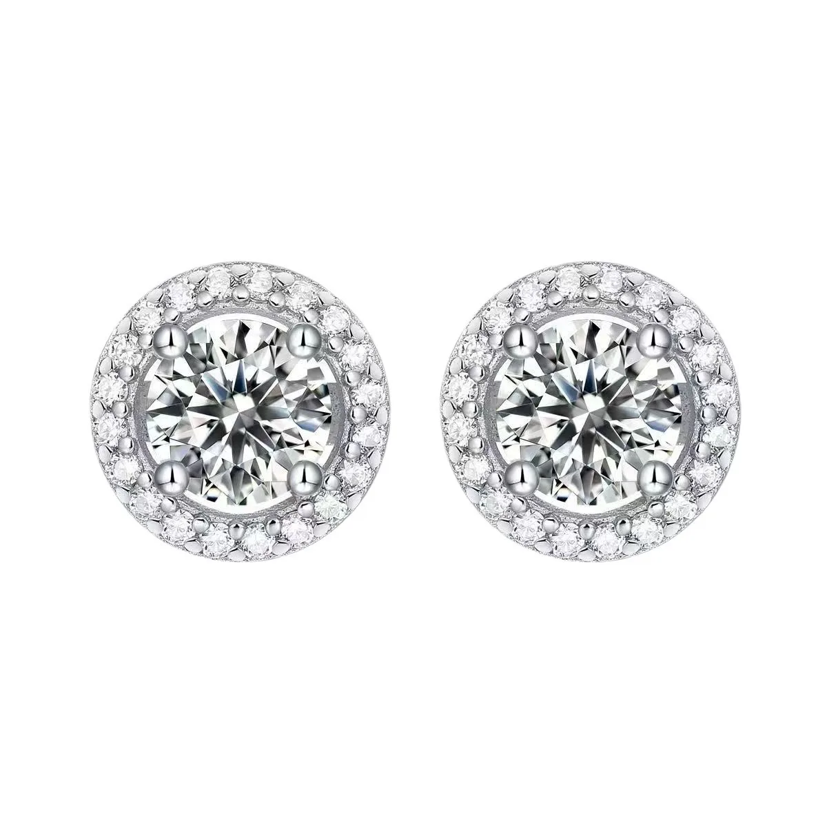 Round cut moissanite stud earrings for men and women. Classic and versatile design suitable for all occasions.