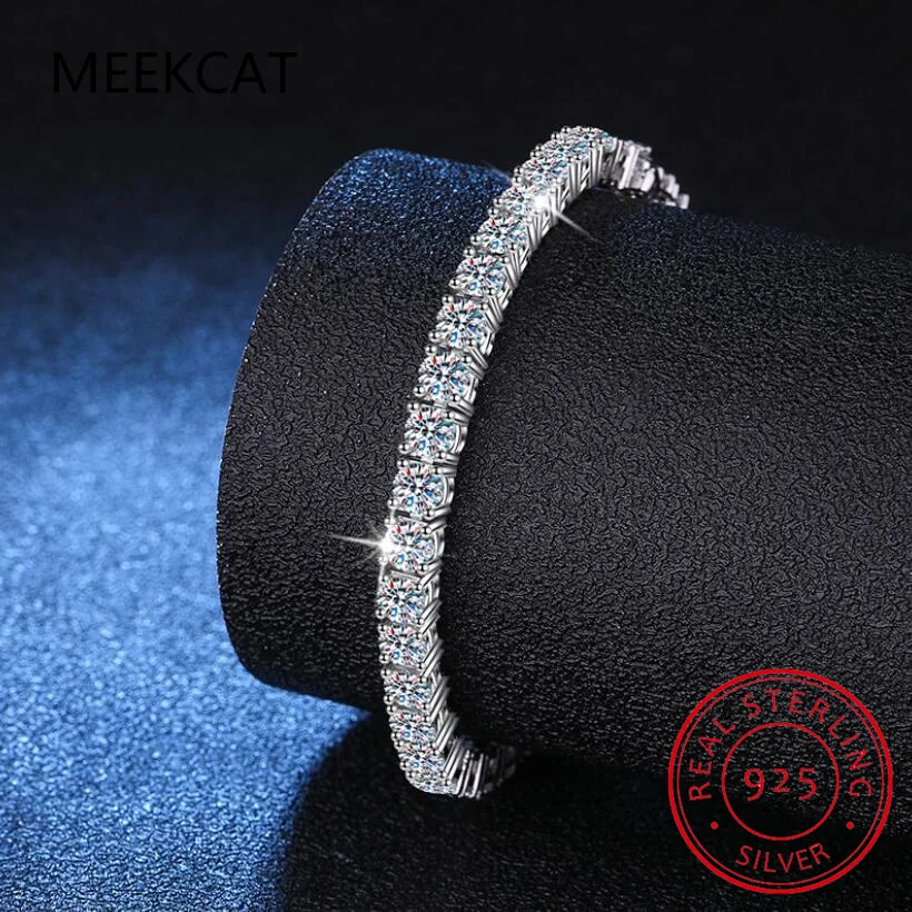 Luxury moissanite tennis bracelet with full diamond-style 925 sterling silver. Sparkling design ideal for special occasions or gifting.