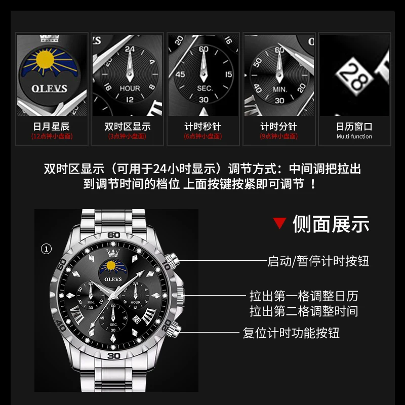 OLEVS skeleton quartz men’s watch with visible movement and stylish design. Perfect for business or casual wear.