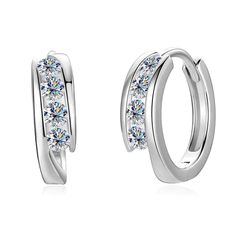 OXTAO D Moissanite Diamond Hoop Earrings 925 Sterling Silver 14K Gold Color Wedding Party Charms Channel Setting Ear Jewelry