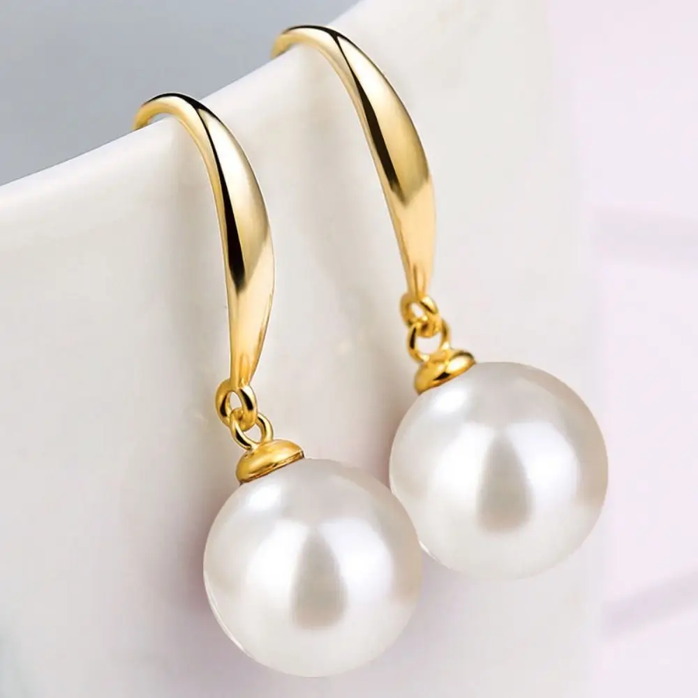 Stylish long drop earrings combining pearl and shell elements. Lightweight and perfect for casual or formal occasions.