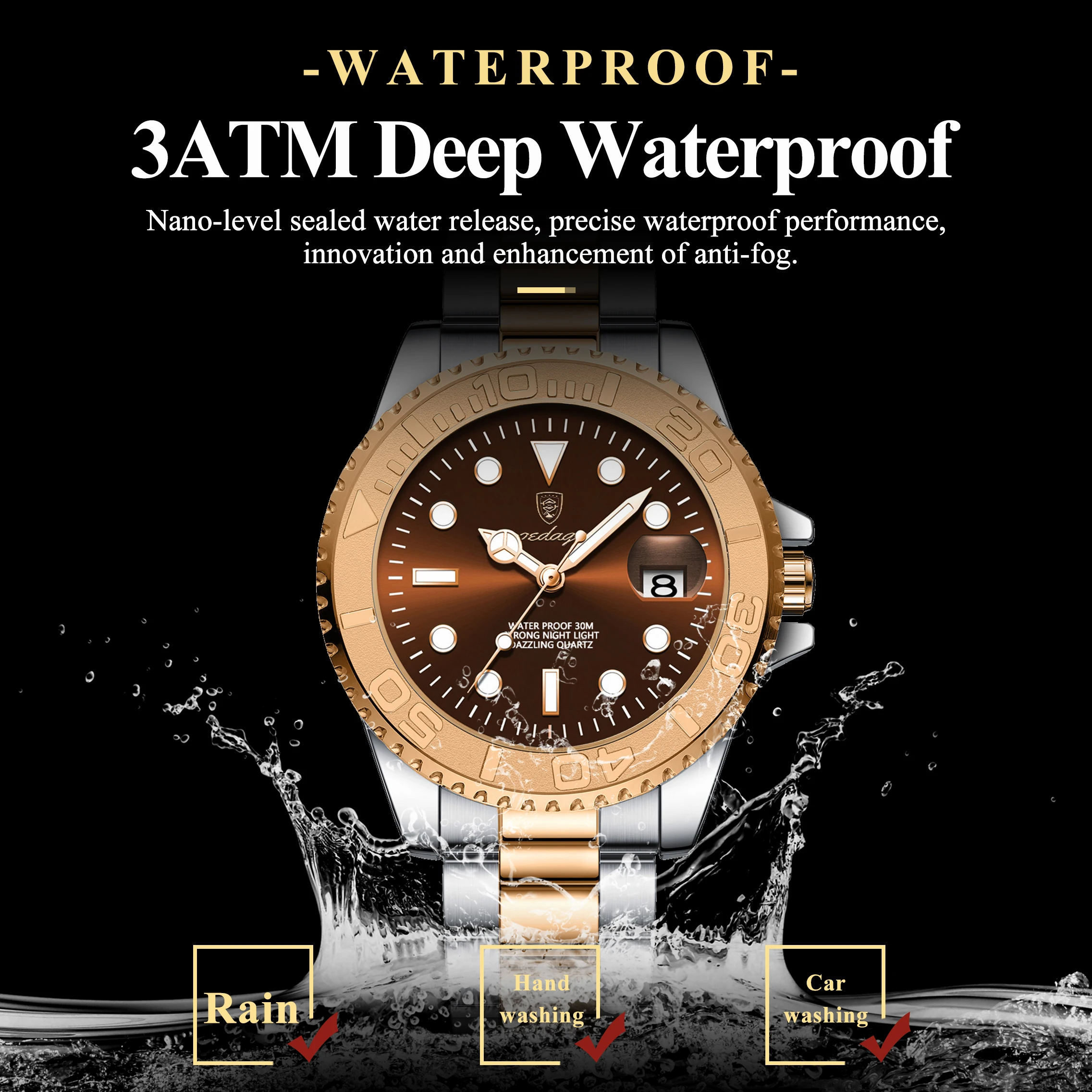 - Feature:Â Luminous, Auto Date, Water-Resistance, swim, Luminous Hands