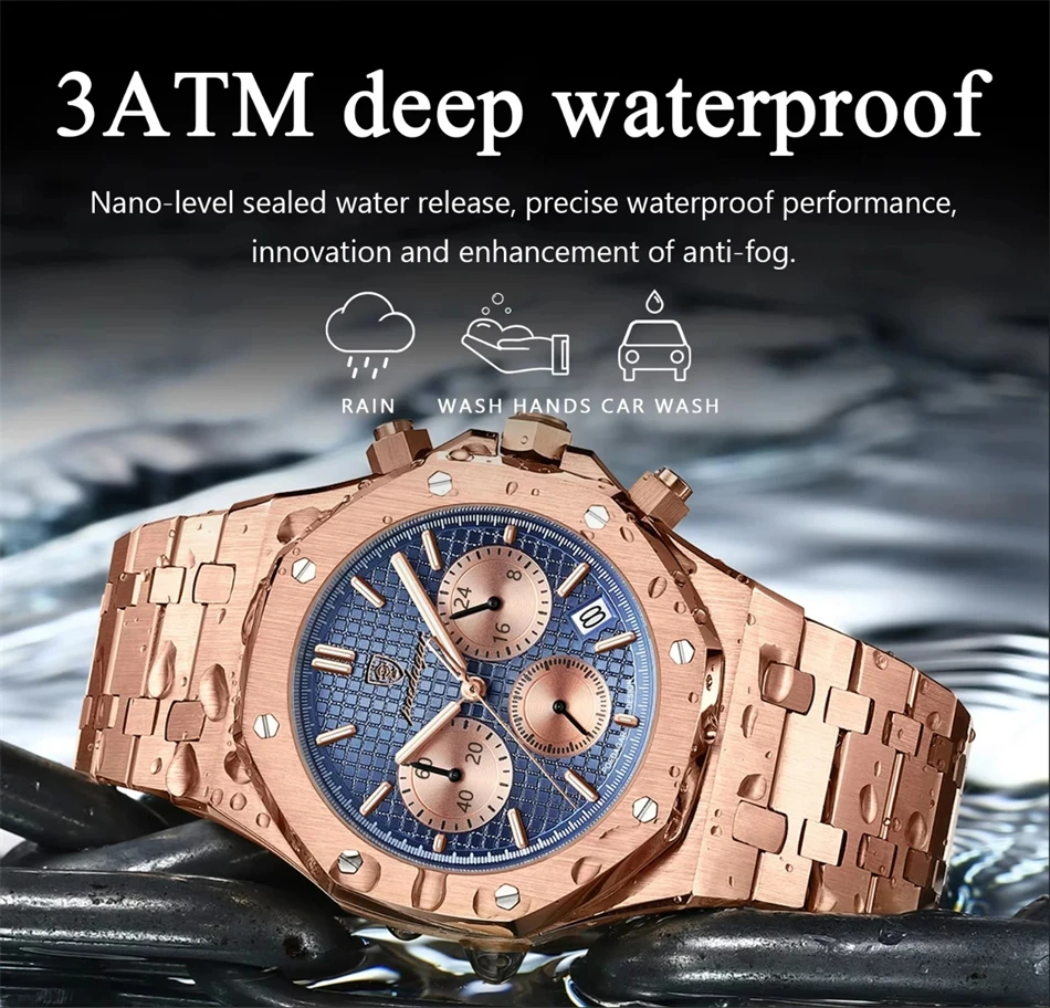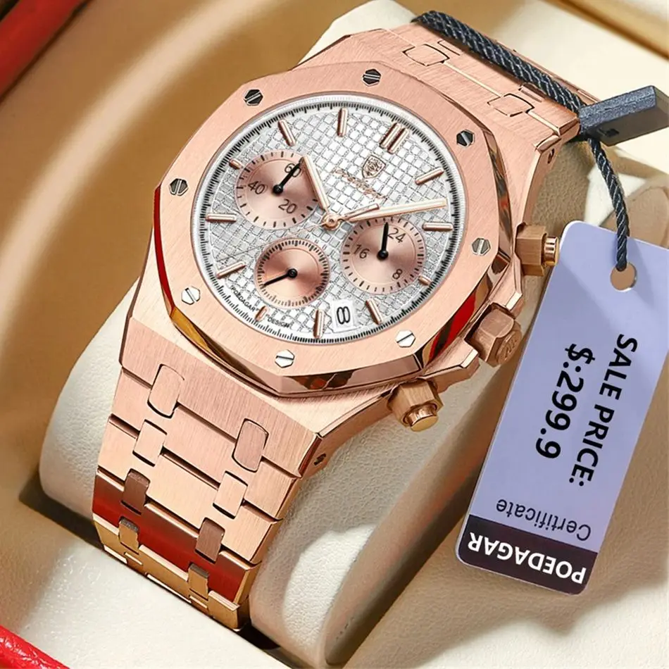 POEDAGAR men’s quartz watch with luminous hands and waterproof stainless steel build. Stylish, durable, and functional.