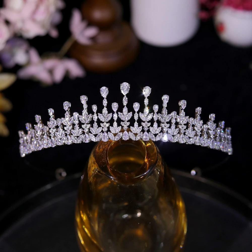 Princess CZ tiara crown with sparkling crystals. Ideal for weddings, pageants, or themed parties.
