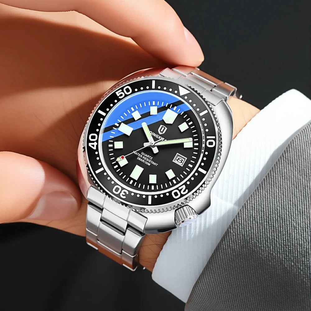 Stylish QINGXIYA men’s business quartz watch with waterproof design and date display. Perfect for office, formal, or everyday wear.