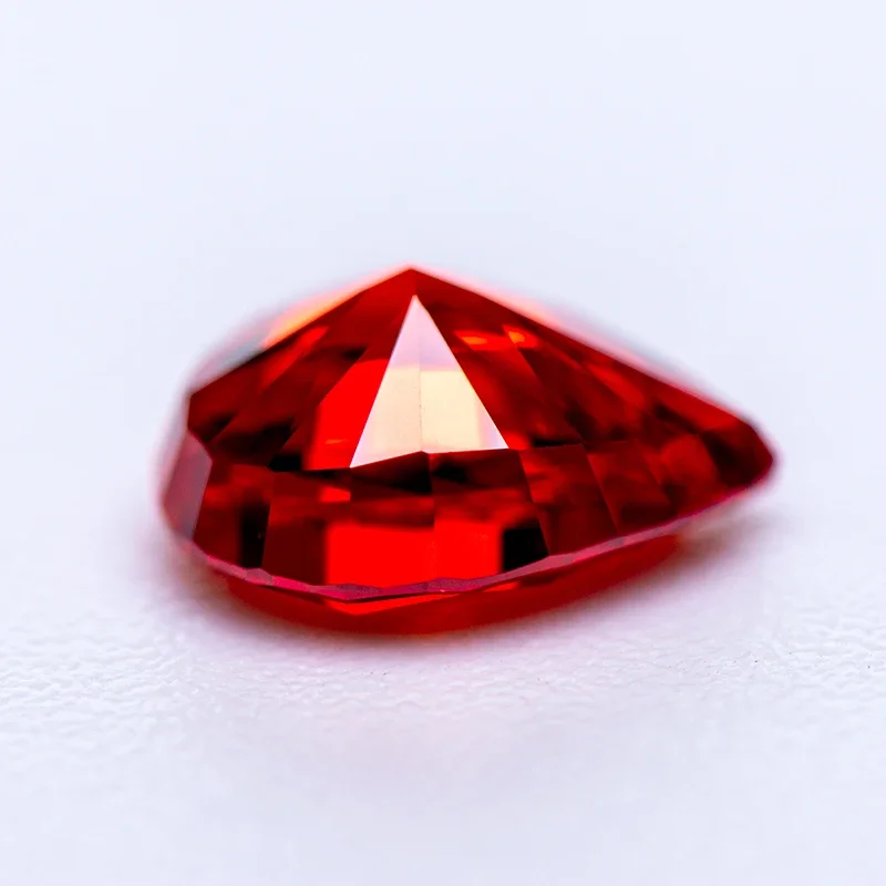 A: This is a premium Red Pear-Shaped CZ (Cubic Zirconia) stone, known for its intense sparkle and clarity. It’s a high-quality simulated diamond, not a natural Zircon gemstone.