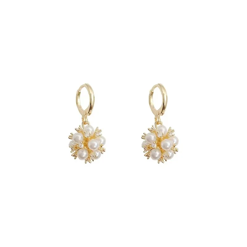 Unique rice bead ball drop earrings combining texture and movement. Lightweight, versatile, and perfect for daily wear or special occasions.