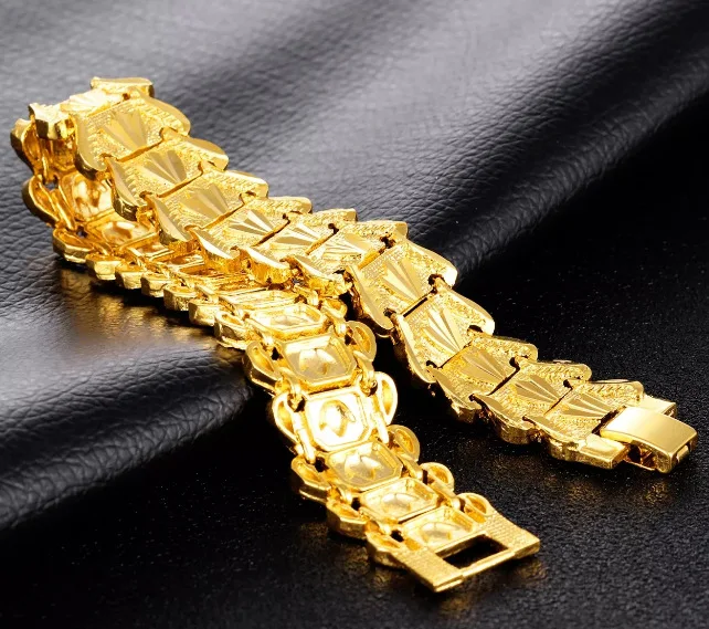 SAIYE 21cm retro European coin gold plated men’s bracelet and watch chain. Stylish and bold design perfect for hip hop fashion.
