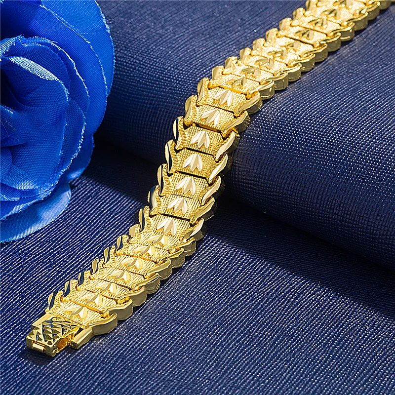 SAIYE 21cm retro European coin gold plated men’s bracelet and watch chain. Stylish and bold design perfect for hip hop fashion.