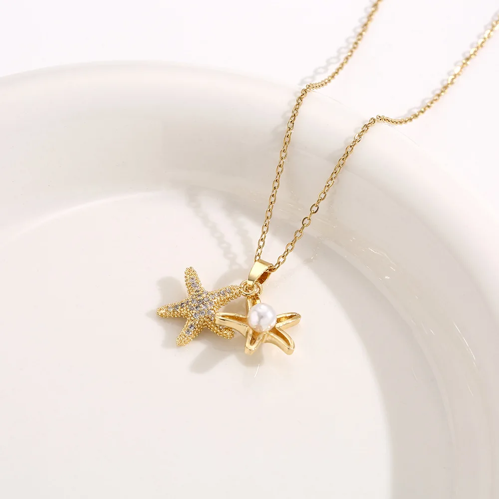 Starfish zircon titanium steel necklace. Sparkling and durable accessory perfect for summer or coastal-inspired looks.