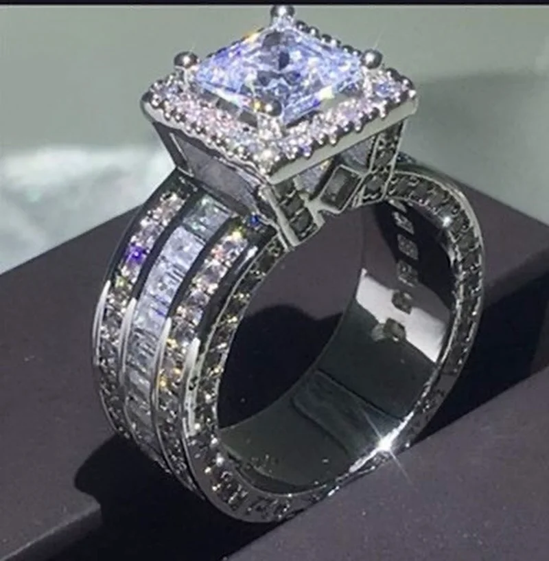 Super shining silver color zircon inlaid fashion wedding ring for women. Sparkling and stylish design ideal for weddings or gifts.