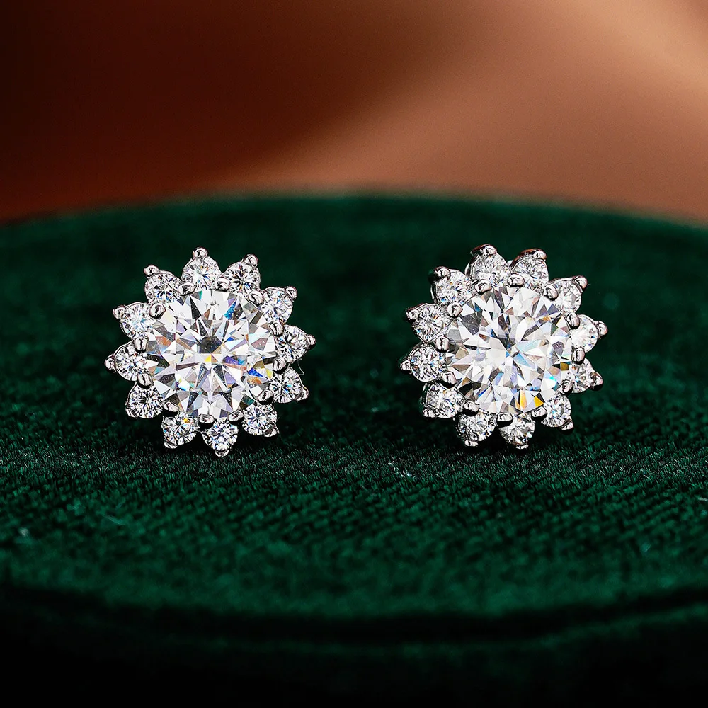 TEN CARATS moissanite round cut stud earrings in 925 silver. Classic sparkling studs perfect for gifts or daily wear.